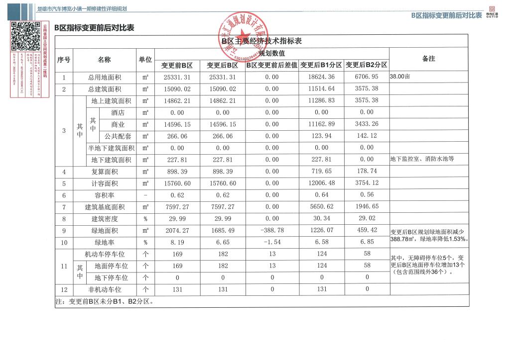 2.对B区机动车停车位的布置进行调整,B区机动车停车位由169个调整为182个,增加13个。一期项目整体机动车停车位由606个调整为619个,增加13个。