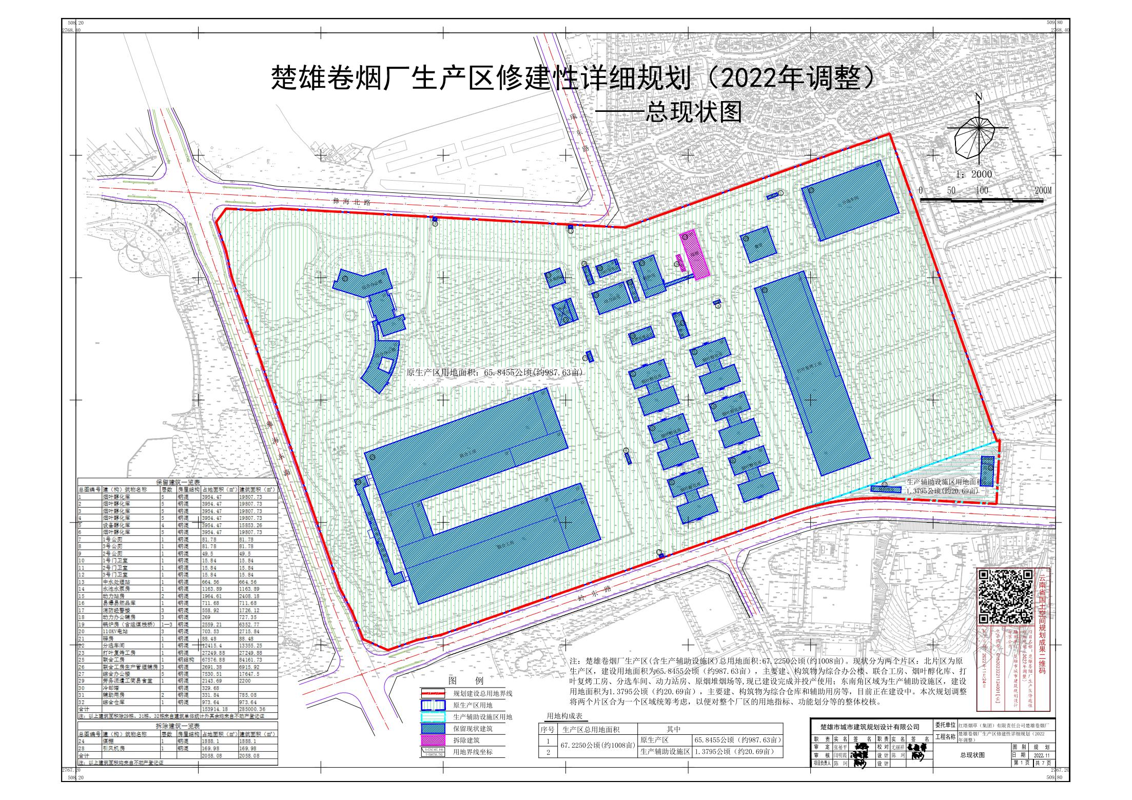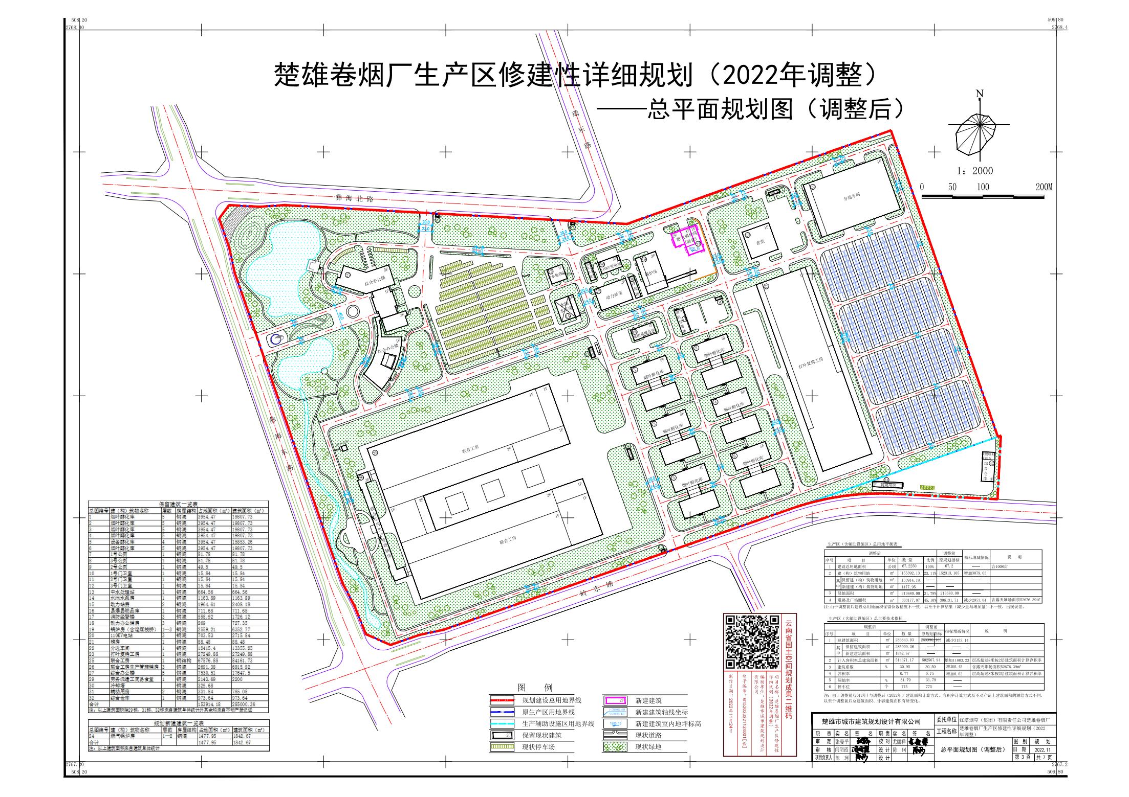 项目名称:楚雄卷烟厂生产区修建性详细规划(2022年调整)