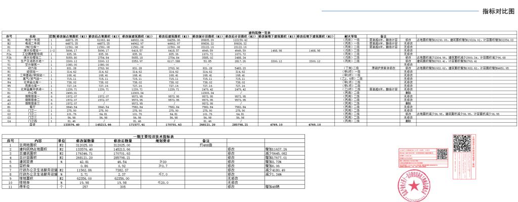 修改前后主要经济技术指标对比