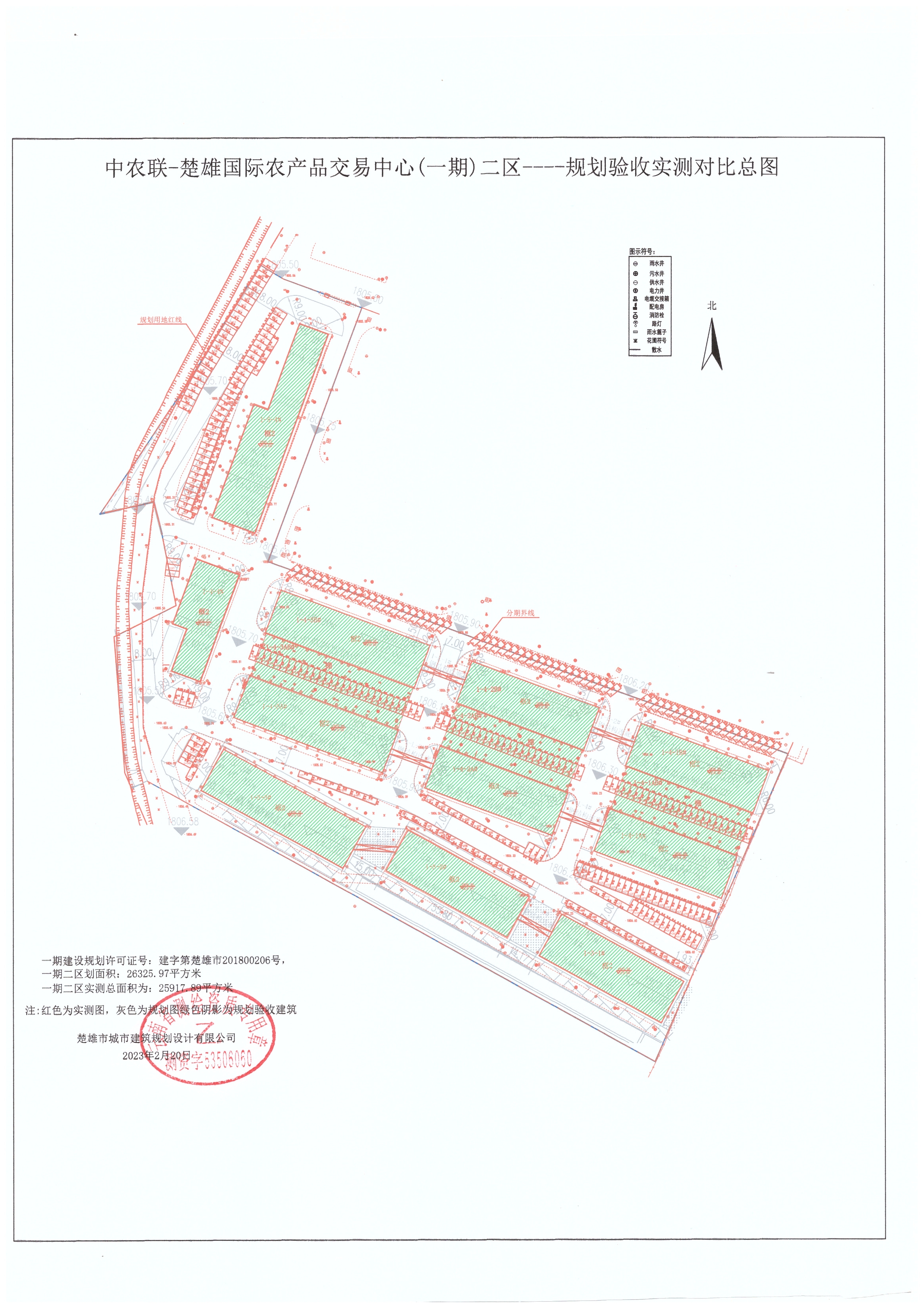 3.中农联-楚雄国际农产品交易中心(一期)二区规划验收实测对比图。
