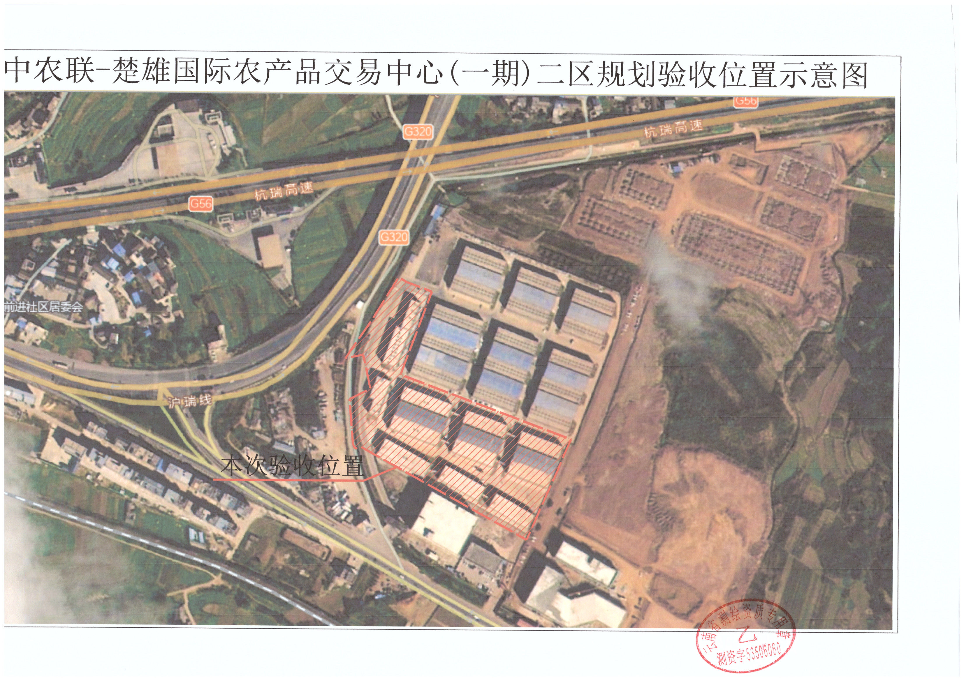 附件内容:1.中农联-楚雄国际农产品交易中心(一期)二区验收位置示意图;