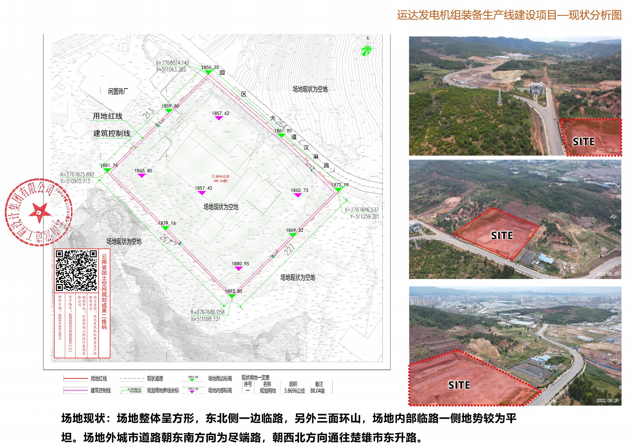 项目简介:运达发电机组装备生产线建设项目用地位于楚雄工业园富民庄甸工业区富民片区,地块东、南、西临现状空地,北临24米园区大道,规划用地面积为88.04亩。通过规划拟新建车间及其配套设施,项目分为两期实施。