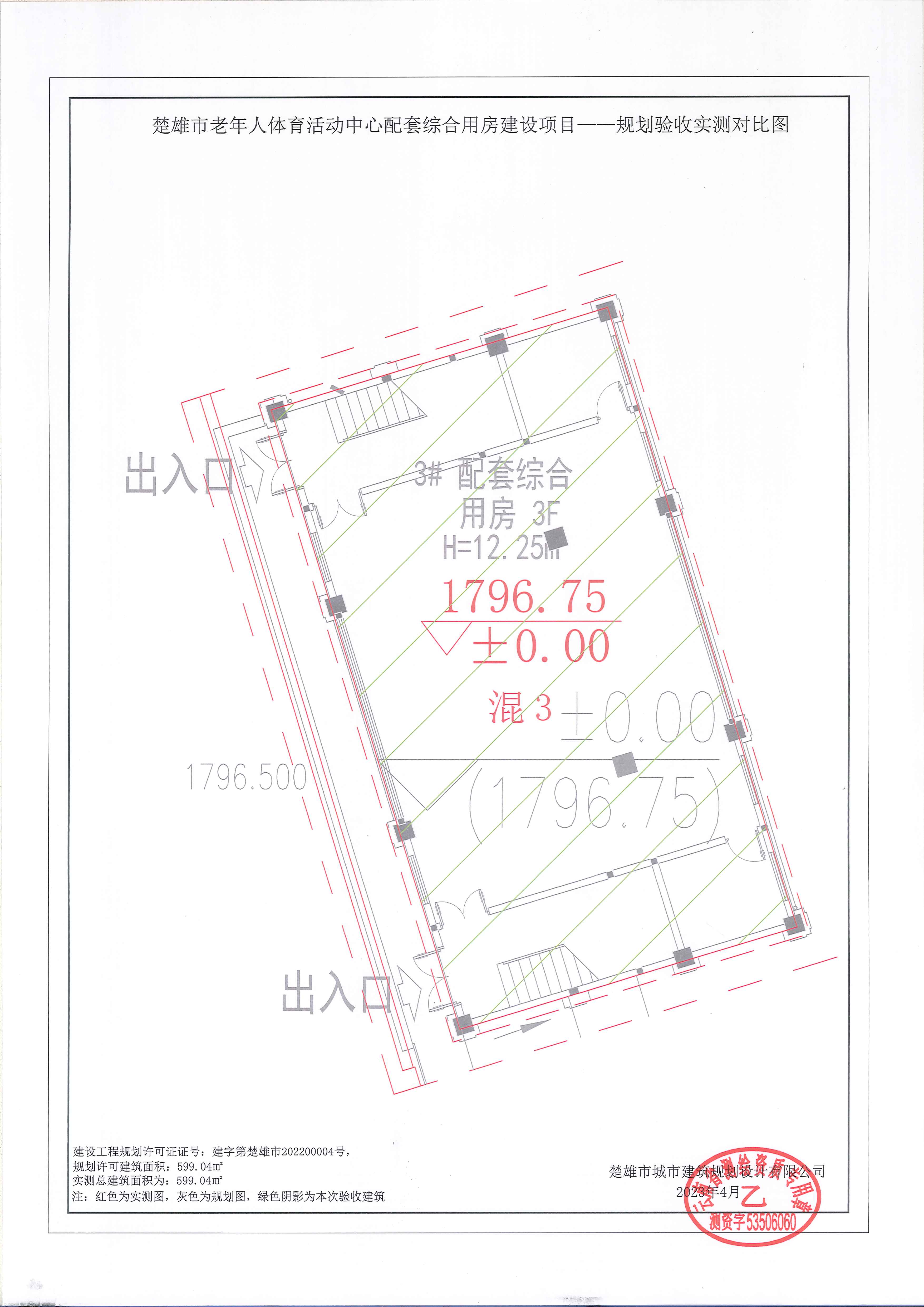 3.楚雄市老年体育活动中心配套综合用房建设项目规划验收实测对比图。