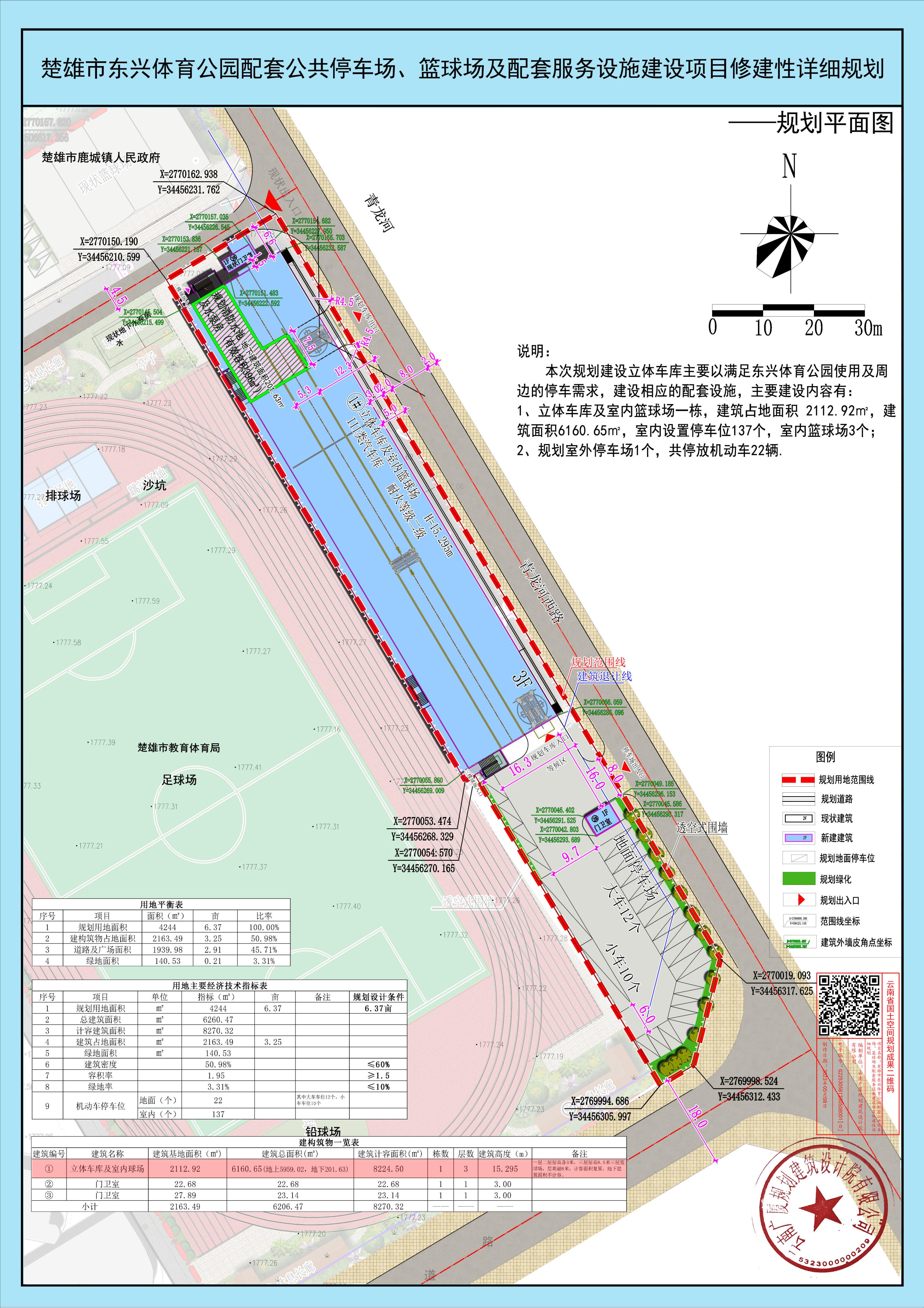项目名称:楚雄市东兴体育公园配套公共停车场、篮球场及配套服务设施建设项目修建性详细规划