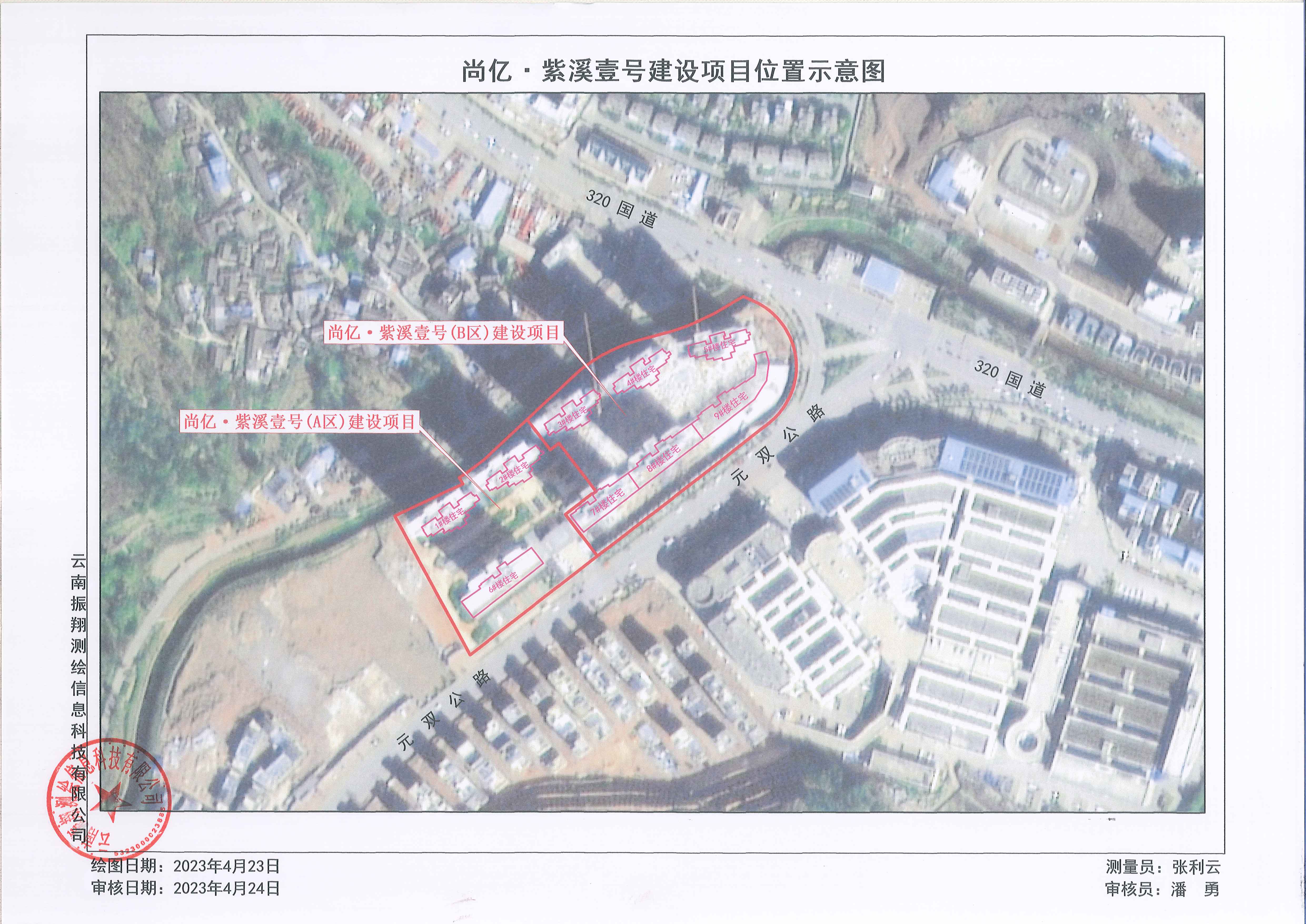 1. 西南(楚雄)义乌商品交易博览城二期(尚亿.紫溪壹号B区)建设项目验收位置示意图;
