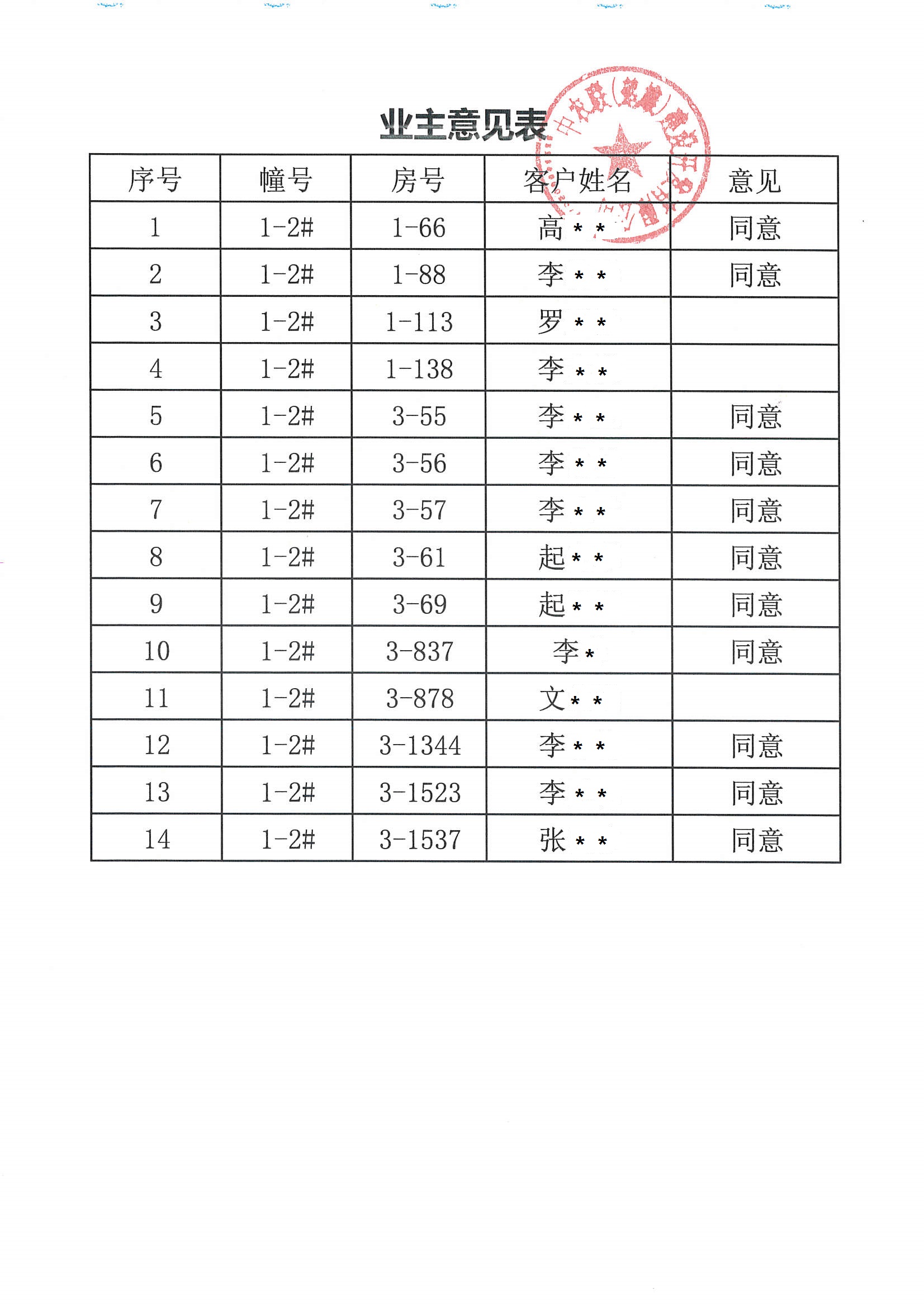 征求意见情况:根据建设单位提交的网签备案以及征求意见情况,1-2#共计销售14间商铺,其中实体商铺1间(1-66),虚拟商铺13个(1-88、1-113、1-138、3-55、3-56、3-57、3-61、3-69、3-837、3-878、3-1344、3-1523、3-1537),已征得11个业主的同意,比例为78.57%。已销售的商铺此次不进行调整(包括编号、位置、面积等)。
