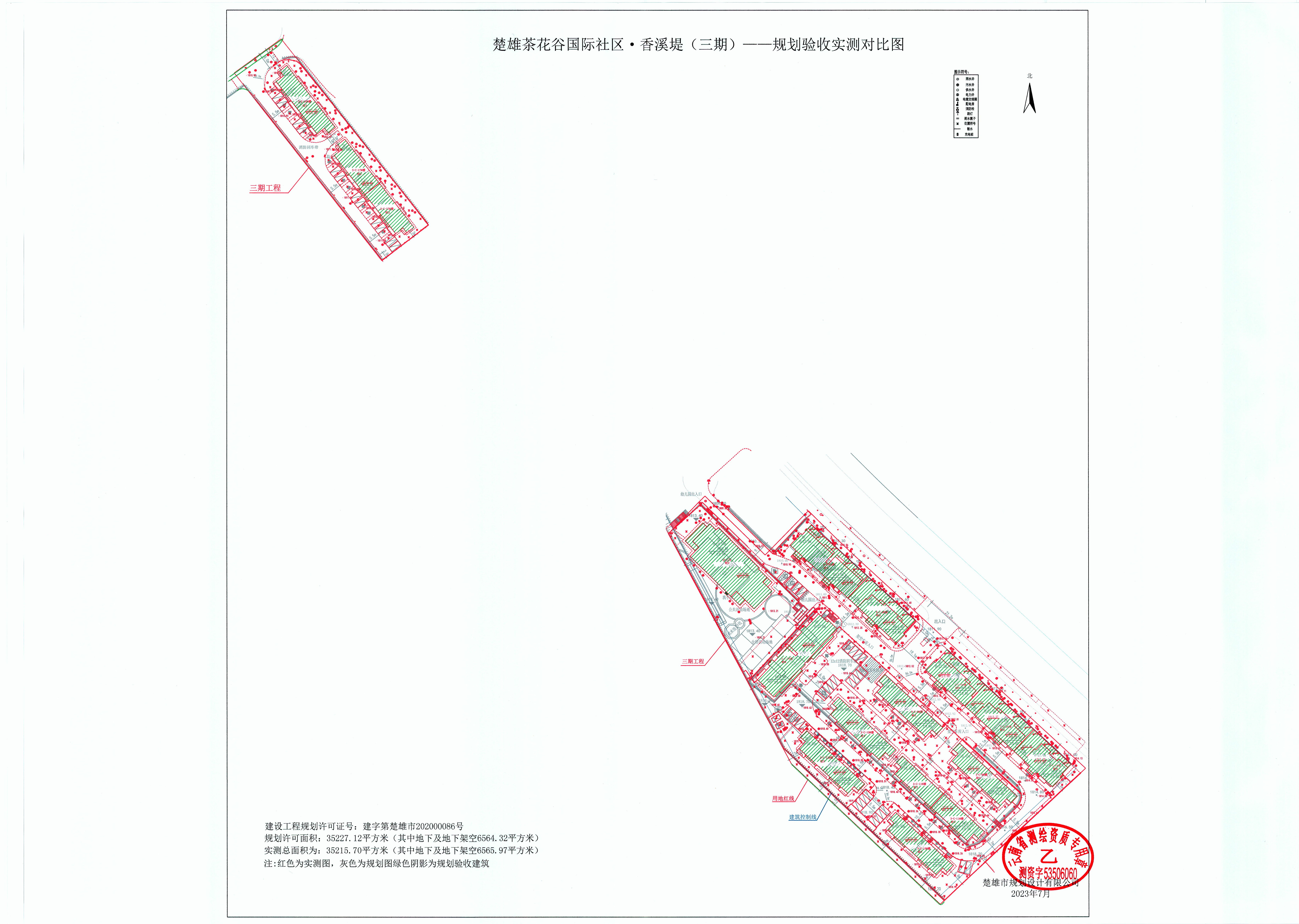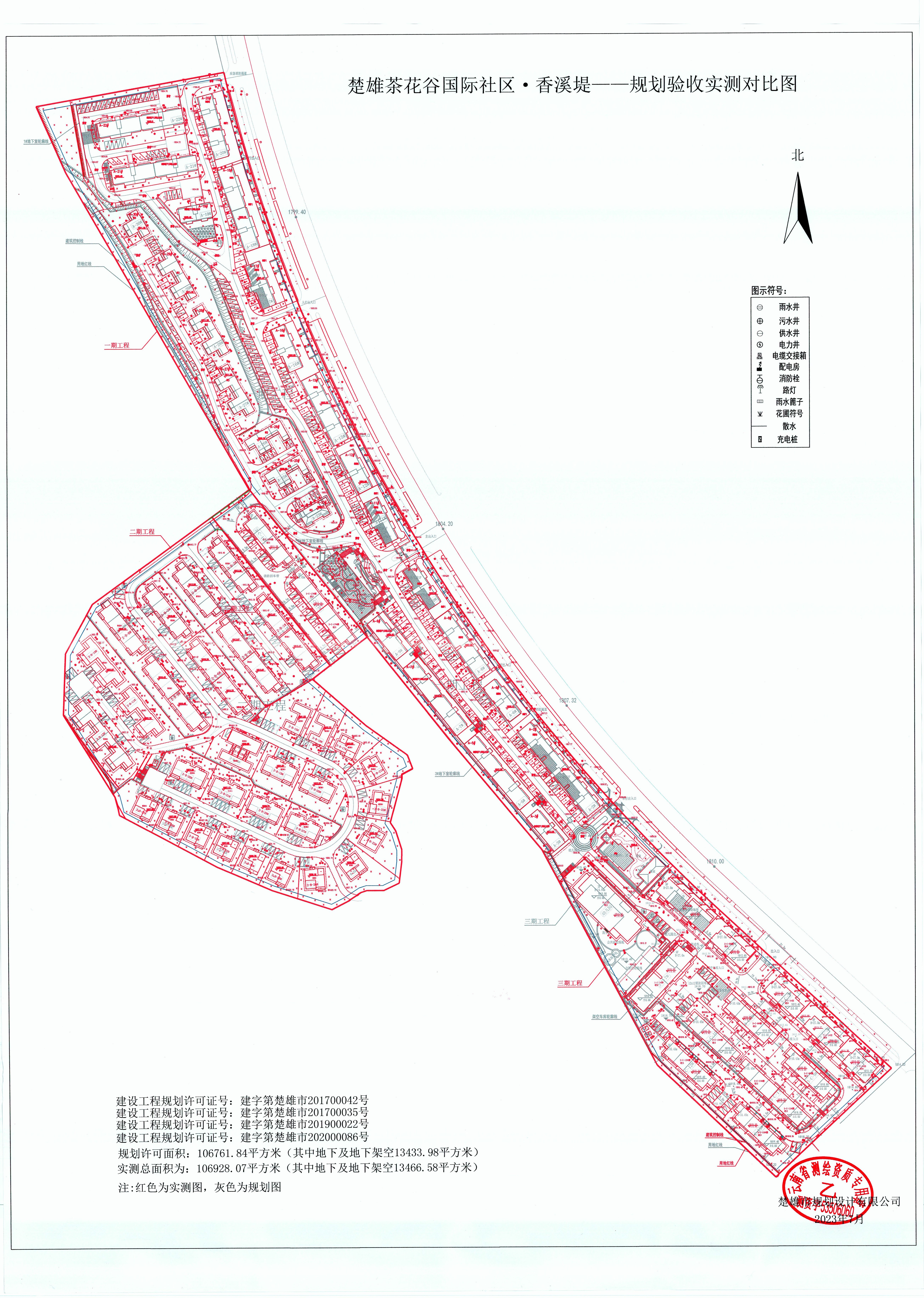 3. 楚雄茶花谷国际社区·香溪堤三期建设项目规划验收实测对比图;