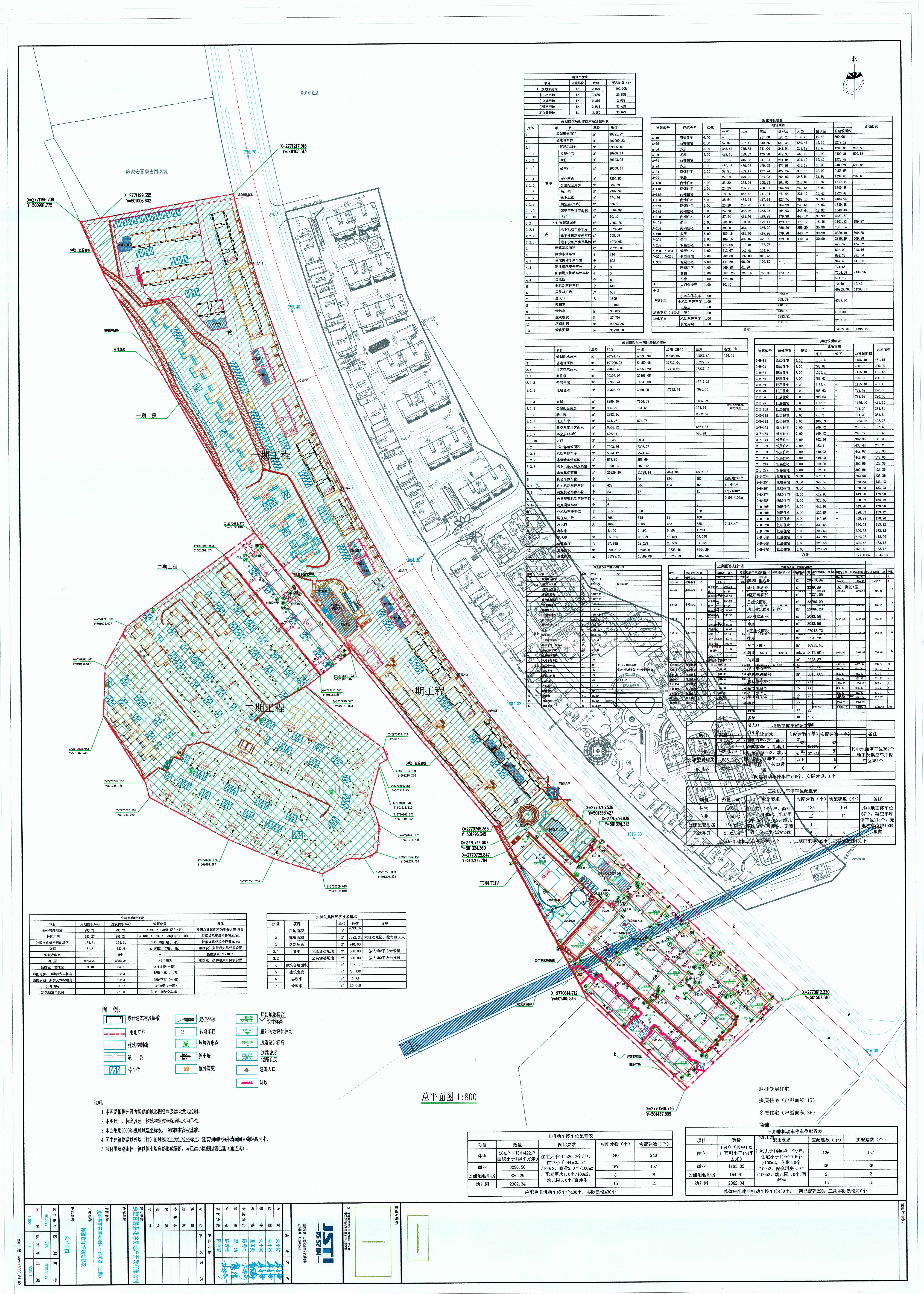 楚雄茶花谷国际社区·香溪堤三期项目规划用地面积20557.82㎡,总建筑面积35227.12㎡,计容建筑面积35227.12㎡,容积率1.714,建筑密度31.07%,绿地率25.22%,机动车停车位181个(地面停车位67个,架空车库停车位114个)。2020年9月项目建设单位根据审定的项目修建性详细规划,办理了楚雄茶花谷国际社区·香溪堤三期《建设工程规划许可证》(编号为建字第楚雄市202000086号),规划许可建筑面积35227.12㎡,其中地上建筑面积28662.8㎡,地下架空建筑面积6564.32㎡,其许可内容为:住宅六栋地上9层;低层住宅八栋地上3层;幼儿园一栋地上3层;地下车库一座地下1层局部设有夹层。