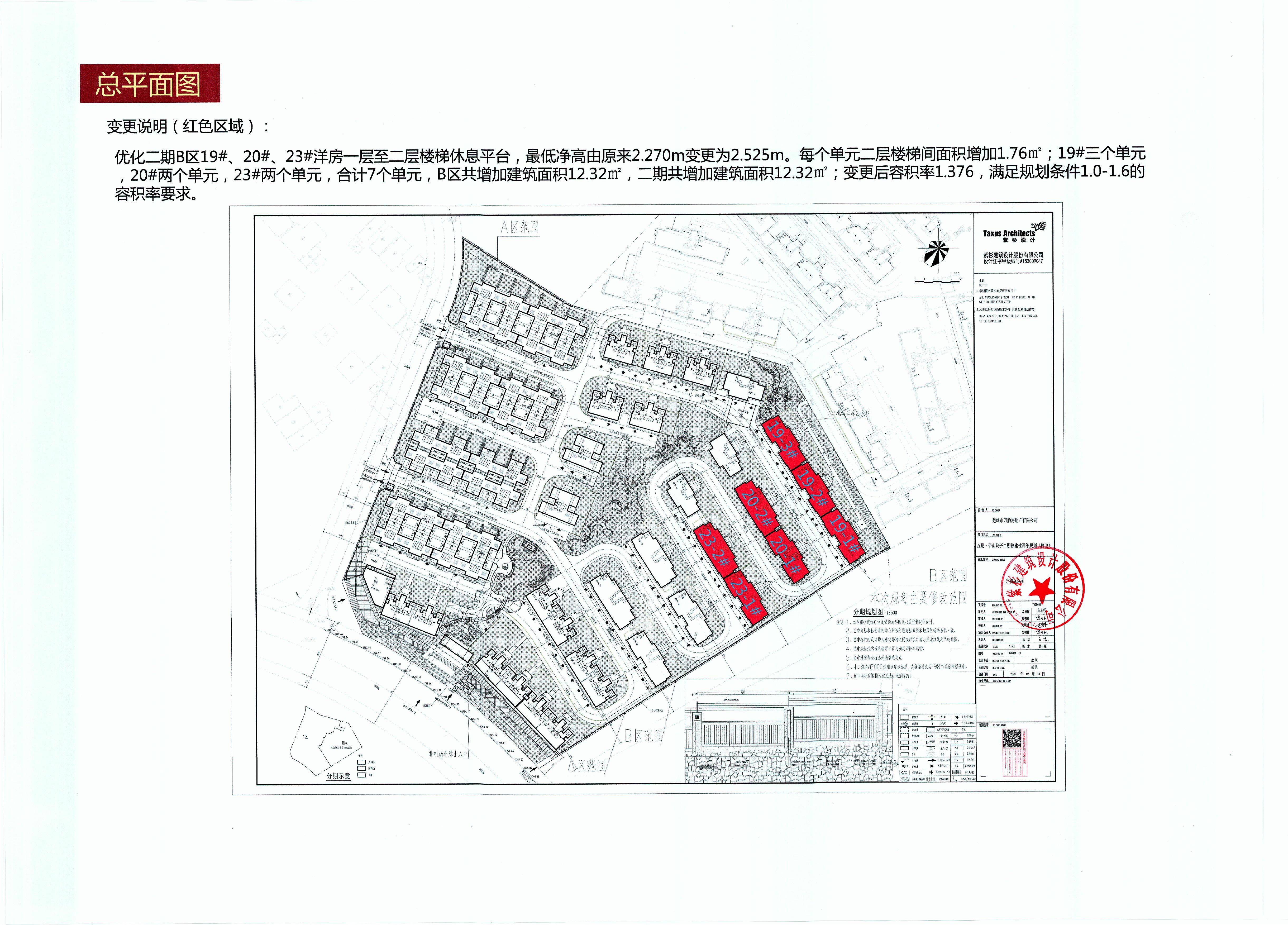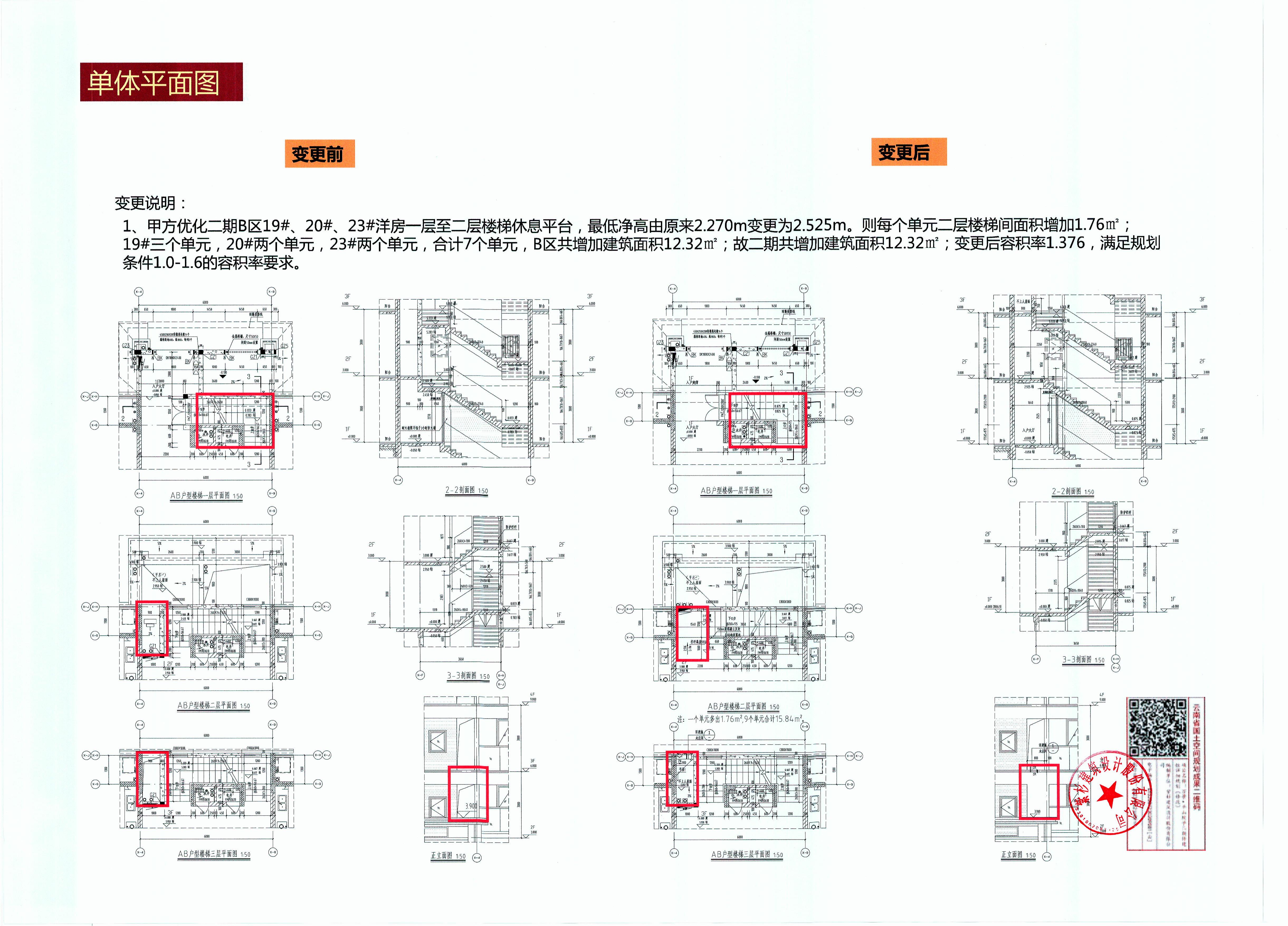 项目简介:万景·平山院子二期项目用地位于楚雄市东南新城北侧,地块东临楚风苑,南临瑞东路,西临自强路,北临万景平山院子一期,规划用地面积62.87亩。该项目修建性详细规划(修改)于2023年2月审定实施,分为A区和B区实施建设。现楚雄市万腾房地产有限公司提出在规划布局、竖向、工程管线等均不变,各项经济技术指标均满足相关规范、技术标准及设计条件要求的前提下,对该项目修建性详细规划B区的19#、20#、23#共7个单元建筑单体设计方案进行变更,具体如下:1-2层楼梯间休息平台向外扩展,每个单元建筑面积增加1.76㎡,7个单元共增加12.32㎡(计容)。