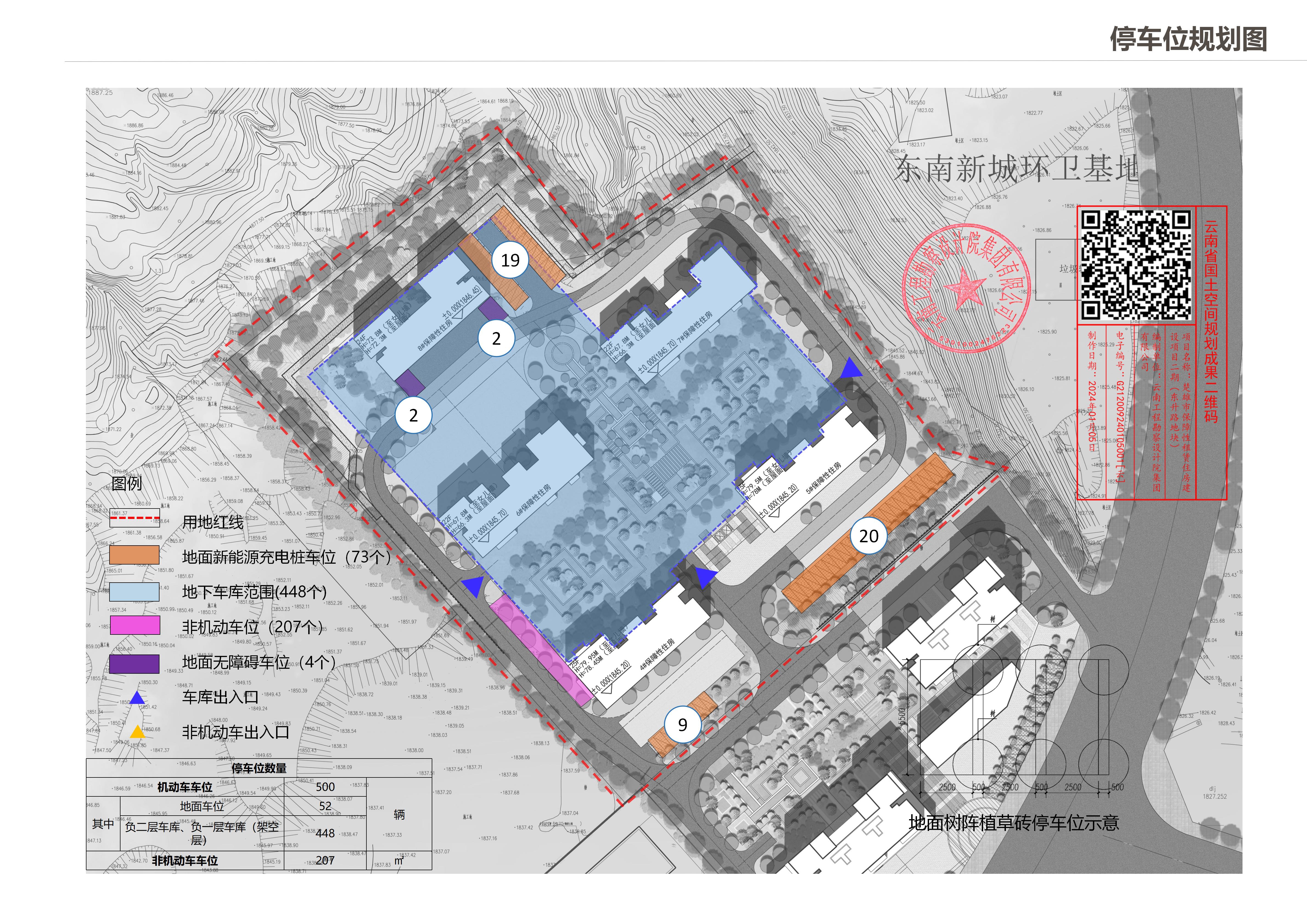 机动车停车位:500个(其中地面停车位52个,车库停车位448个)