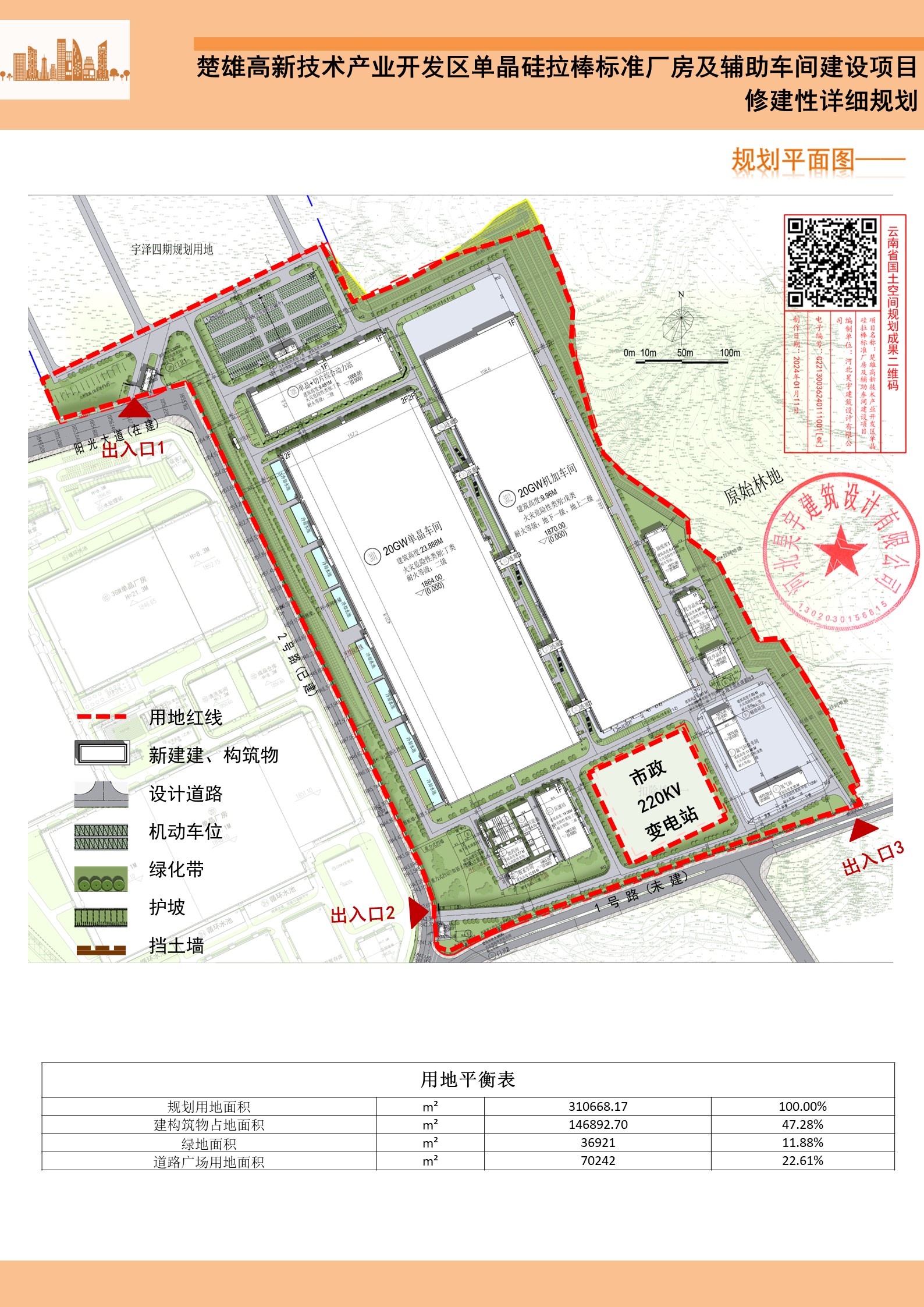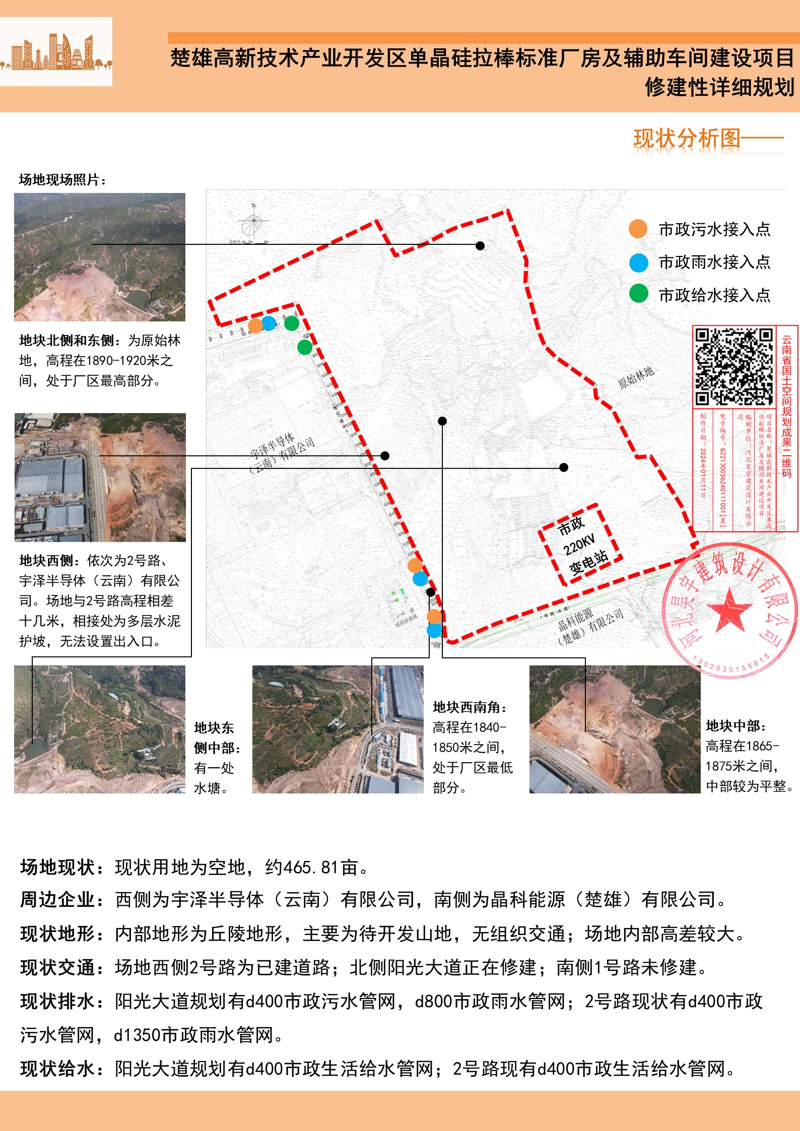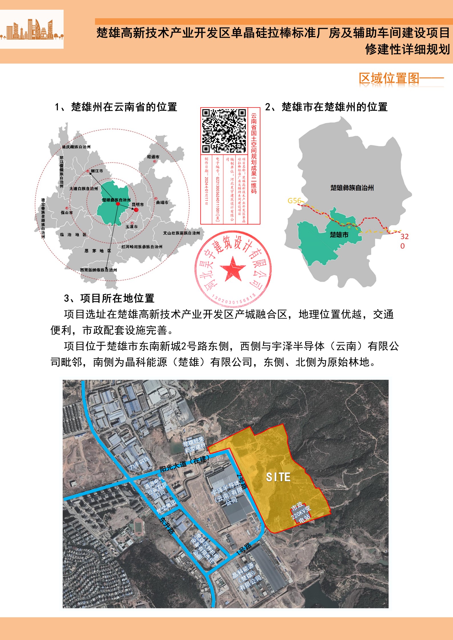 项目名称:楚雄高新技术产业开发区单晶硅拉棒标准厂房及辅助车间建设项目修建性详细规划