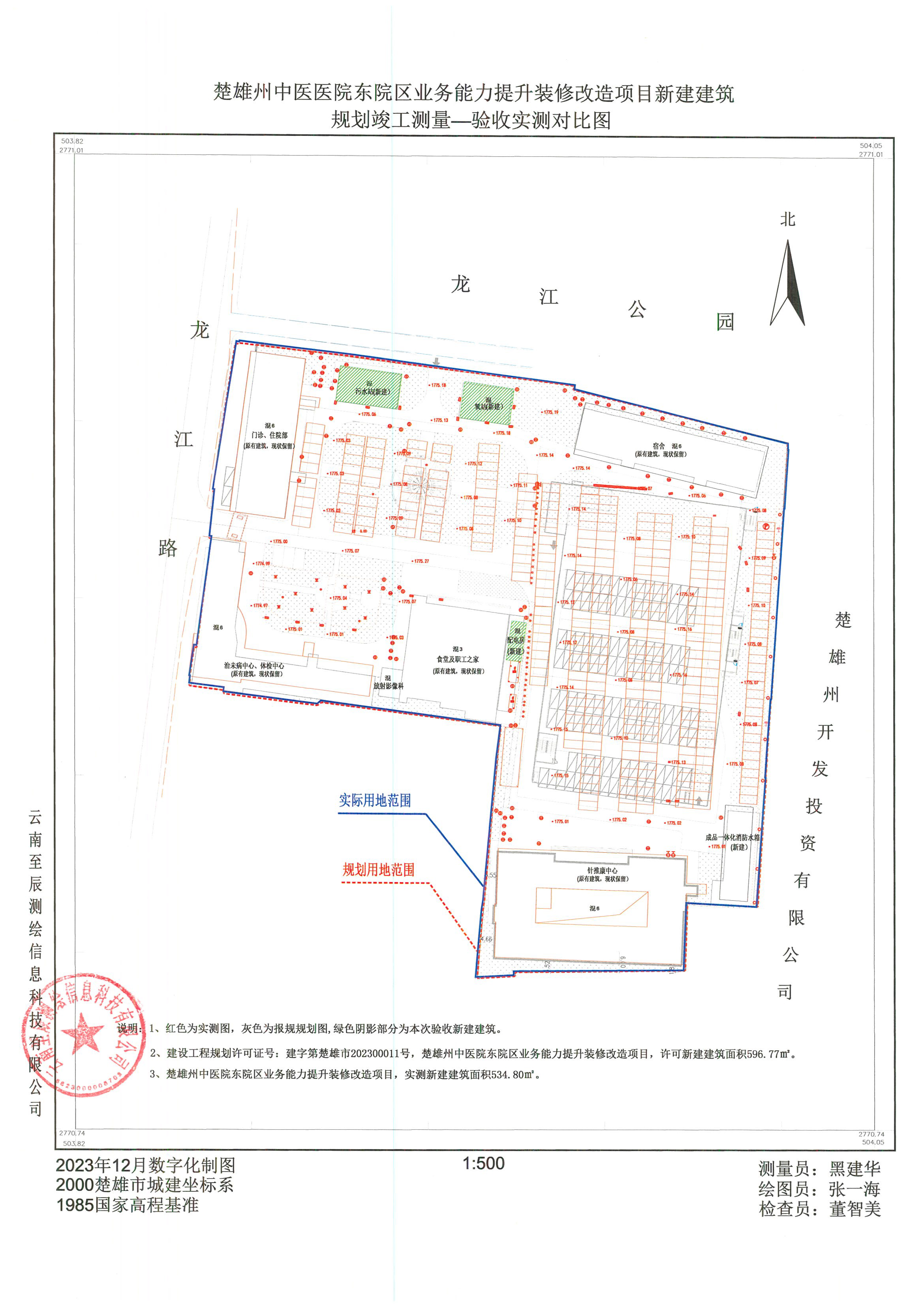 3.楚雄州中医医院东院区业务能力提升装修改造项目(新建配电房、氧站、污水站)规划验收实测对比图。