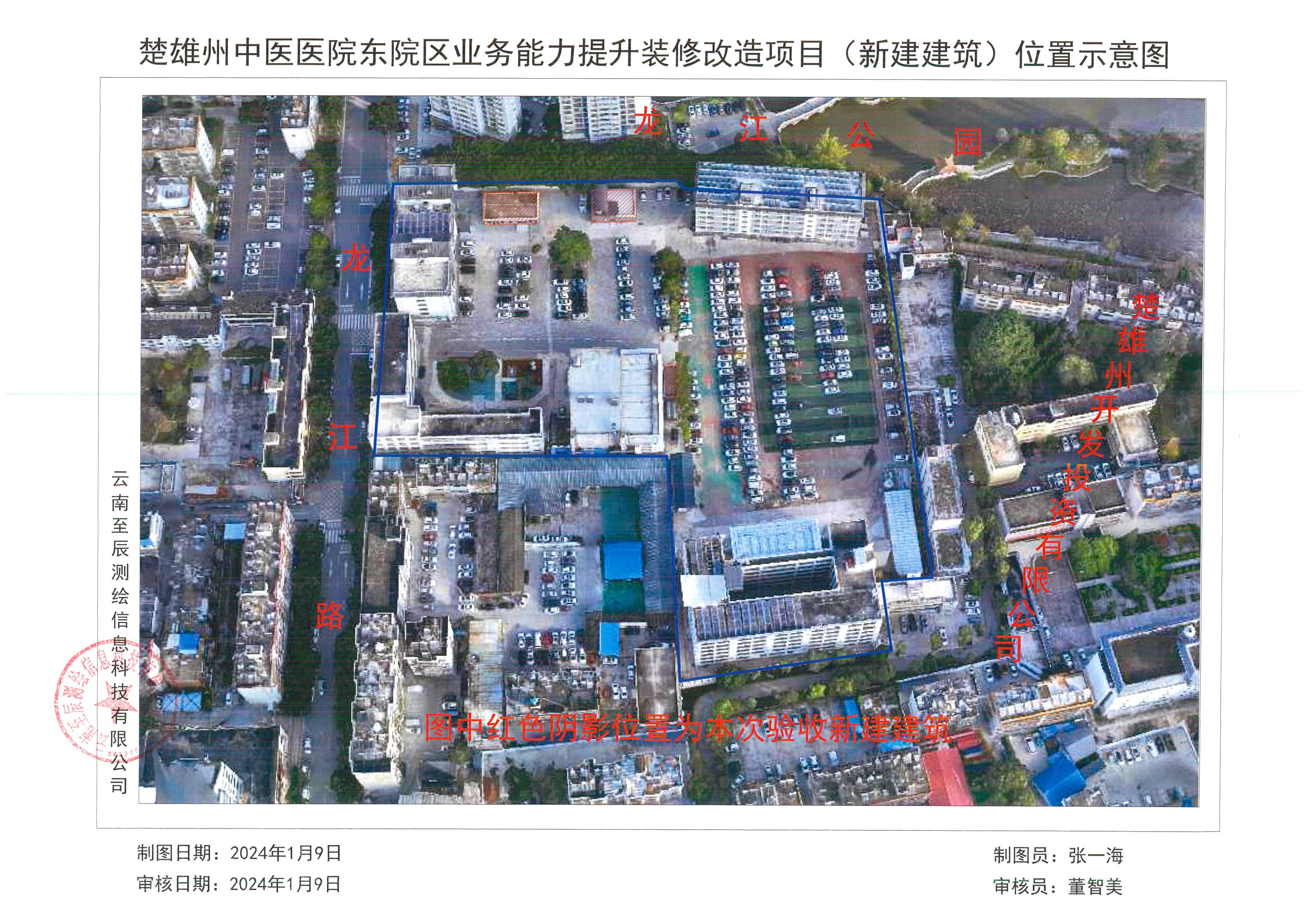 附件内容:1.楚雄州中医医院东院区业务能力提升装修改造项目(新建配电房、氧站、污水站)验收位置示意图;