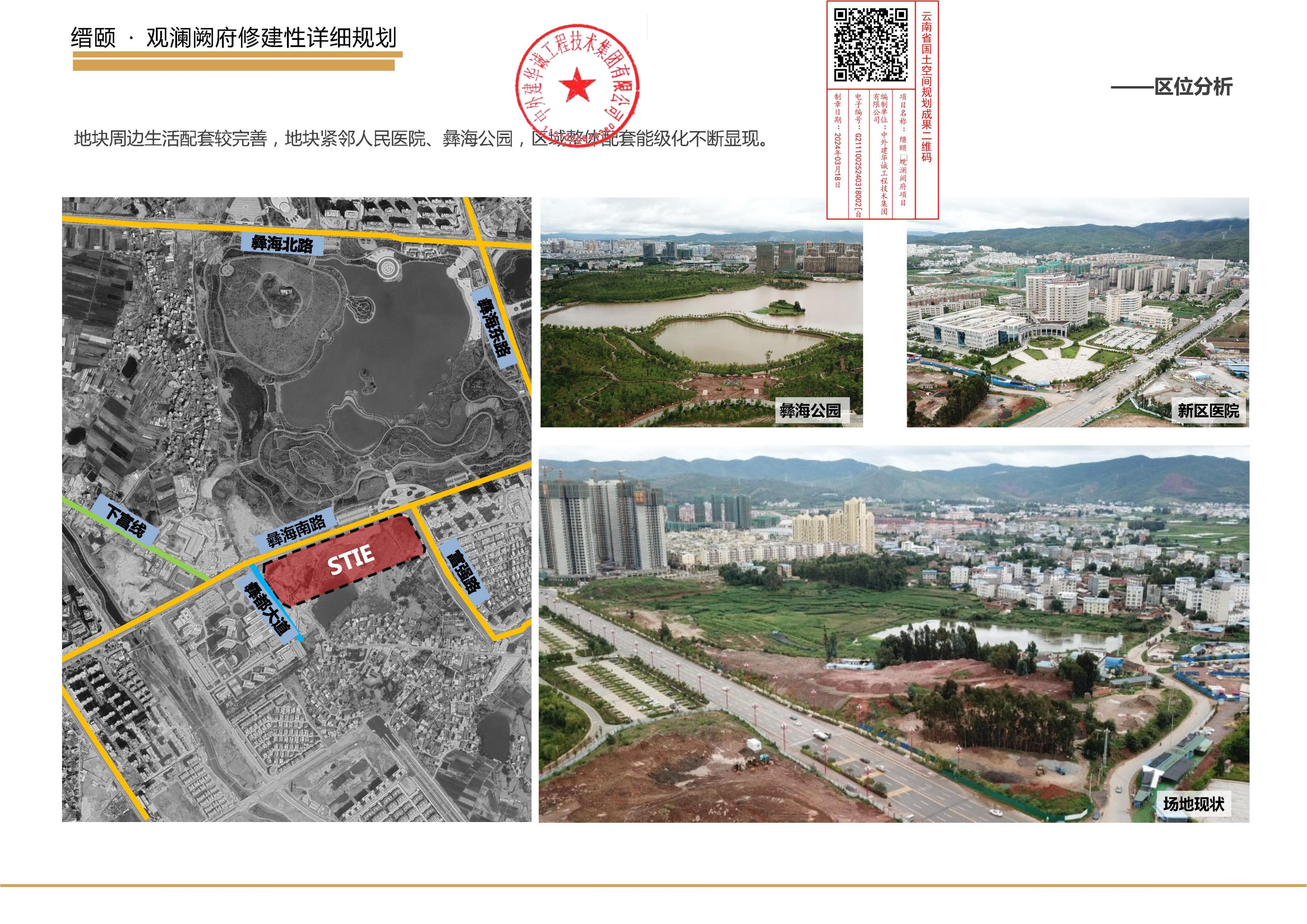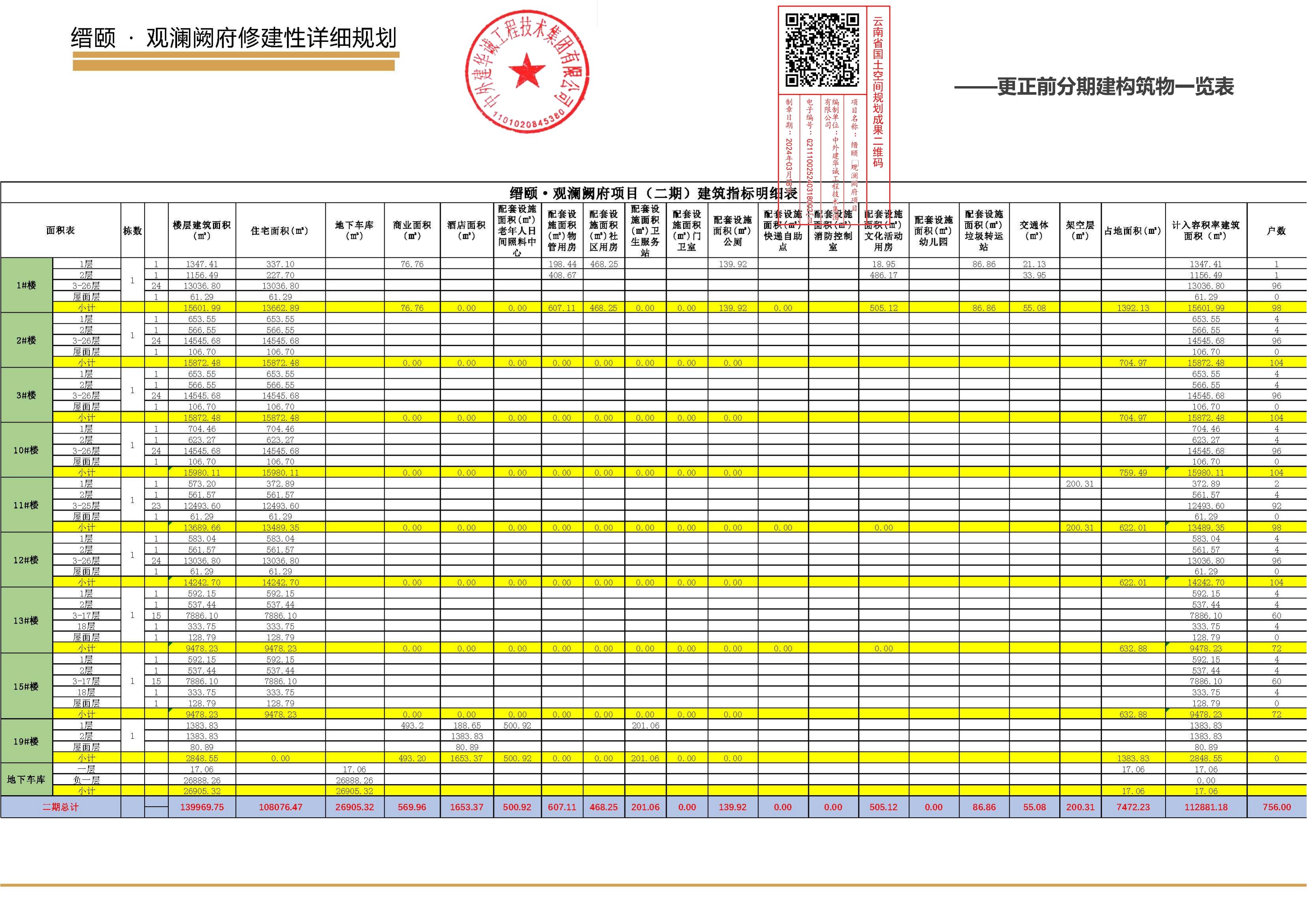 项目简介:缙颐·观澜阙府项目用地位于楚雄市东南新城中部,地块东临富强路,南临现状空地,西临彝都大道,北临彝海南路,规划用地面积123.76亩。该项目修建性详细规划于2021年7月审定,分两期规划实施。现楚雄市鼎瞻置业有限公司提出,由于规划失误,误将一二期地下建筑面积指标颠倒,导致分期总建筑面积和地下建筑面积出现错误,现予以更正,同时,地下建筑面积依据施工图进行微调。具体如下: