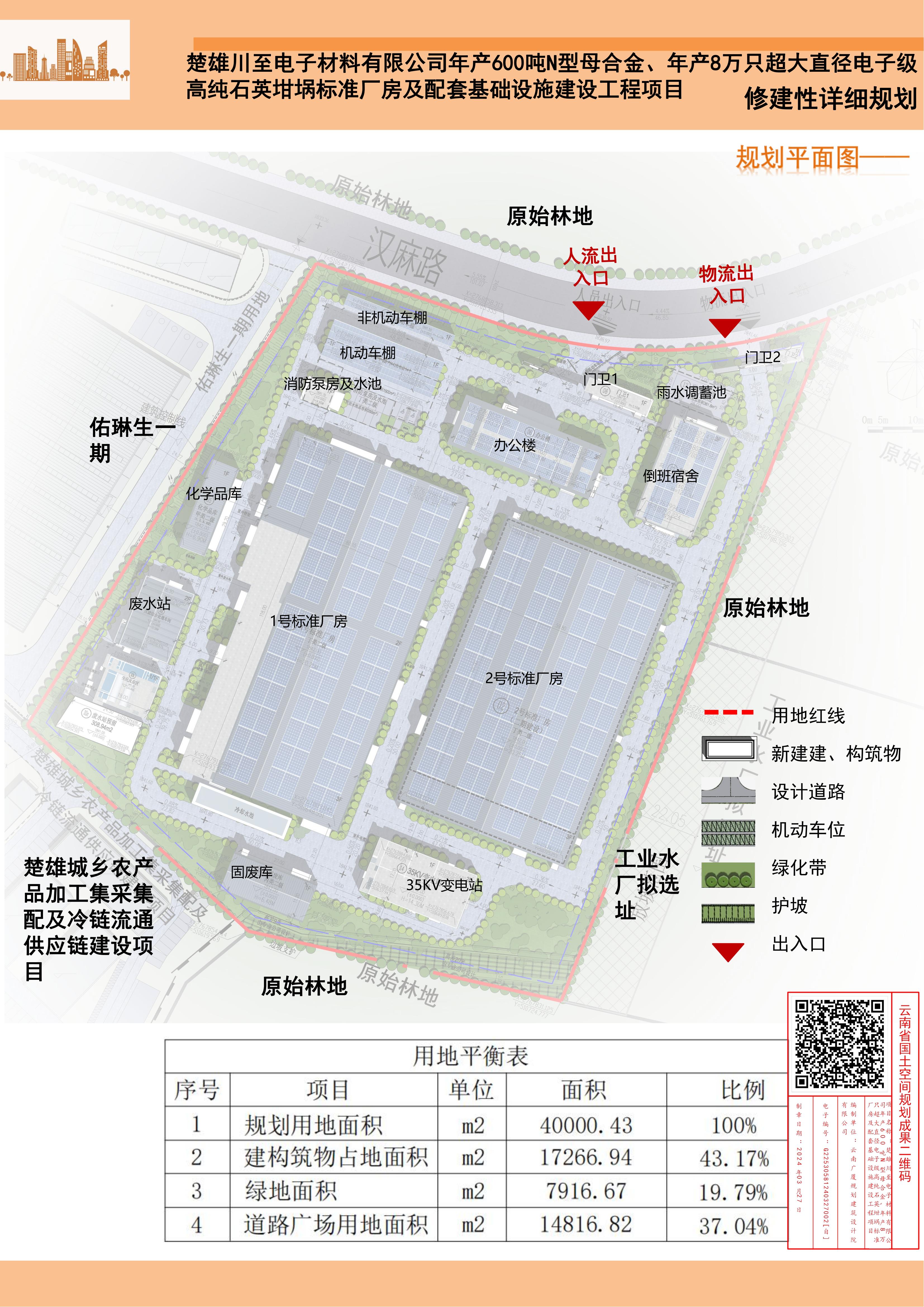 项目名称:楚雄川至电子材料有限公司年产600吨N型母合金、年产8万只超大直径电子级高纯石英坩埚标准厂房及配套基础设施建设项目修建性详细规划