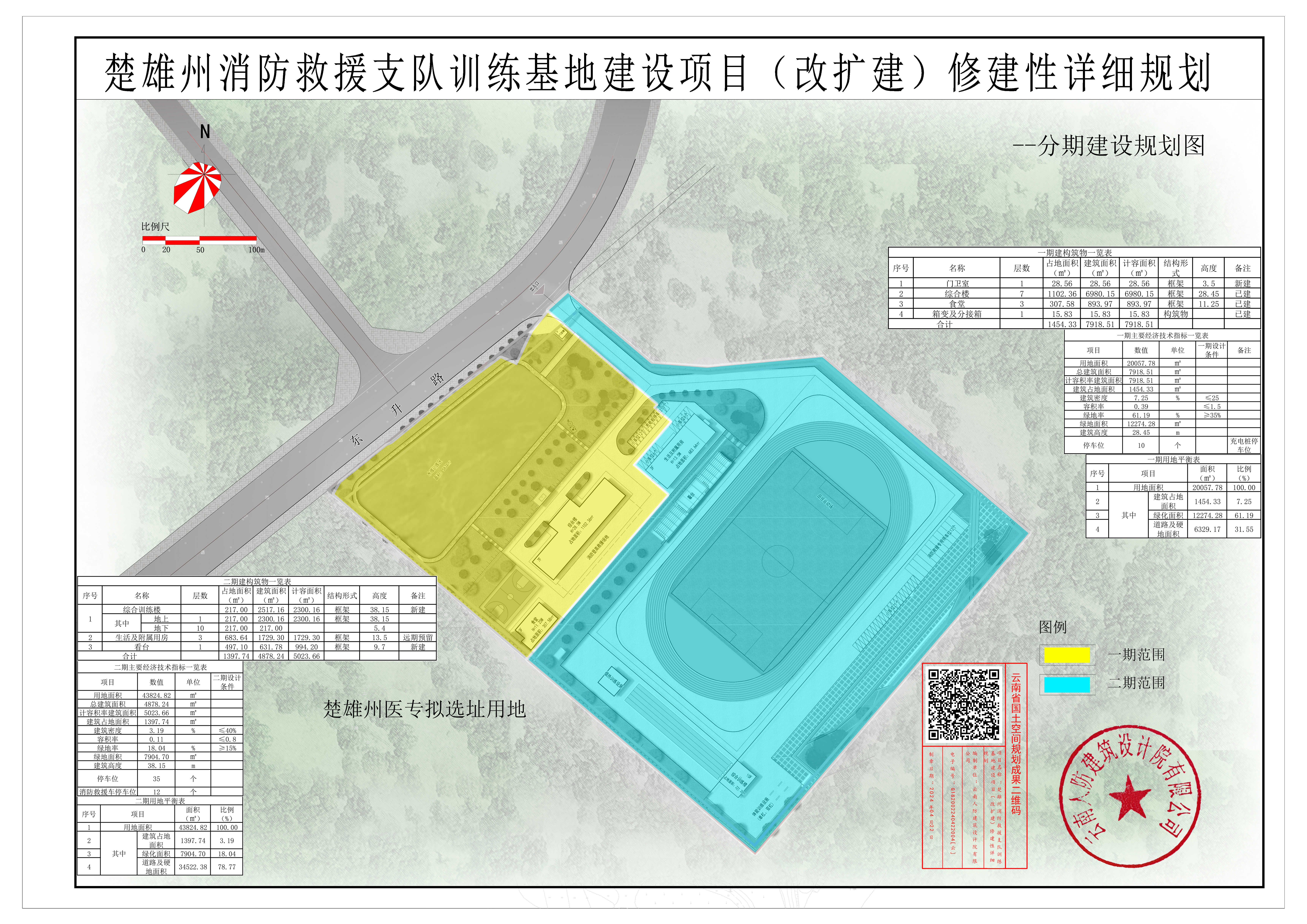 项目简介:楚雄州消防救援支队训练基地建设项目用地位于楚雄市滇中楚雄科创城片区东南部,地块东、南、西临现状山体,北临东升路,规划总用地面积95.82亩。该项目一期已通过规划审查,部分建设完成并投入使用,现根据使用需求对一期进行调整优化,并对二期进行规划建设。