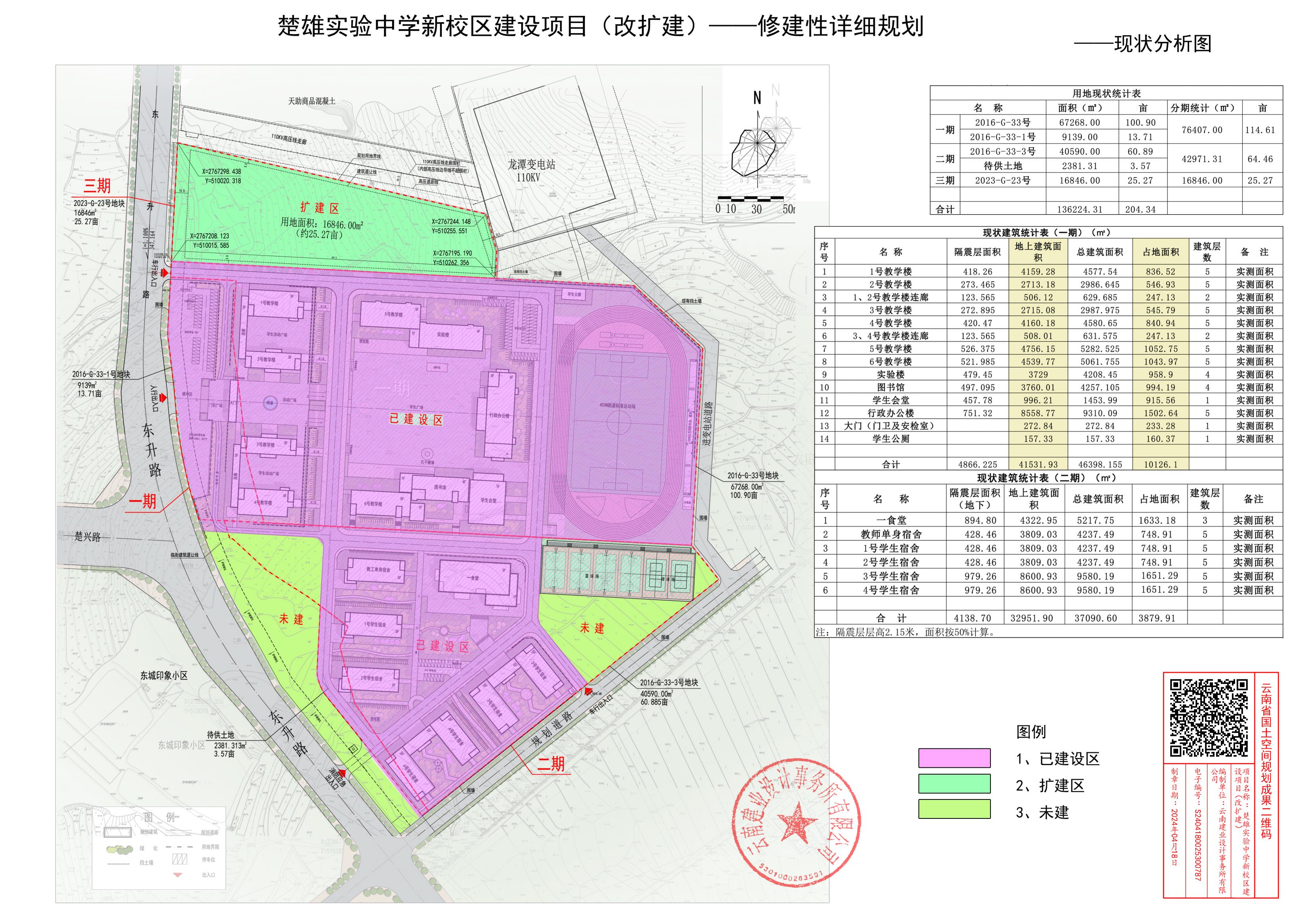 项目简介:楚雄实验中学新校区建设项目用地位于楚雄市中心城区东南部,地块东临现状道路,南临规划道路,西临东升路,北临110KV高压走廊,规划总用地面积204.34亩。楚雄实验中学新校区建设项目一期已建成并完成规划核实验收,二期已建部分正在进行规划核实验收工作,此次规划对二期未建设部分进行优化调整,并扩展规划建设三期。