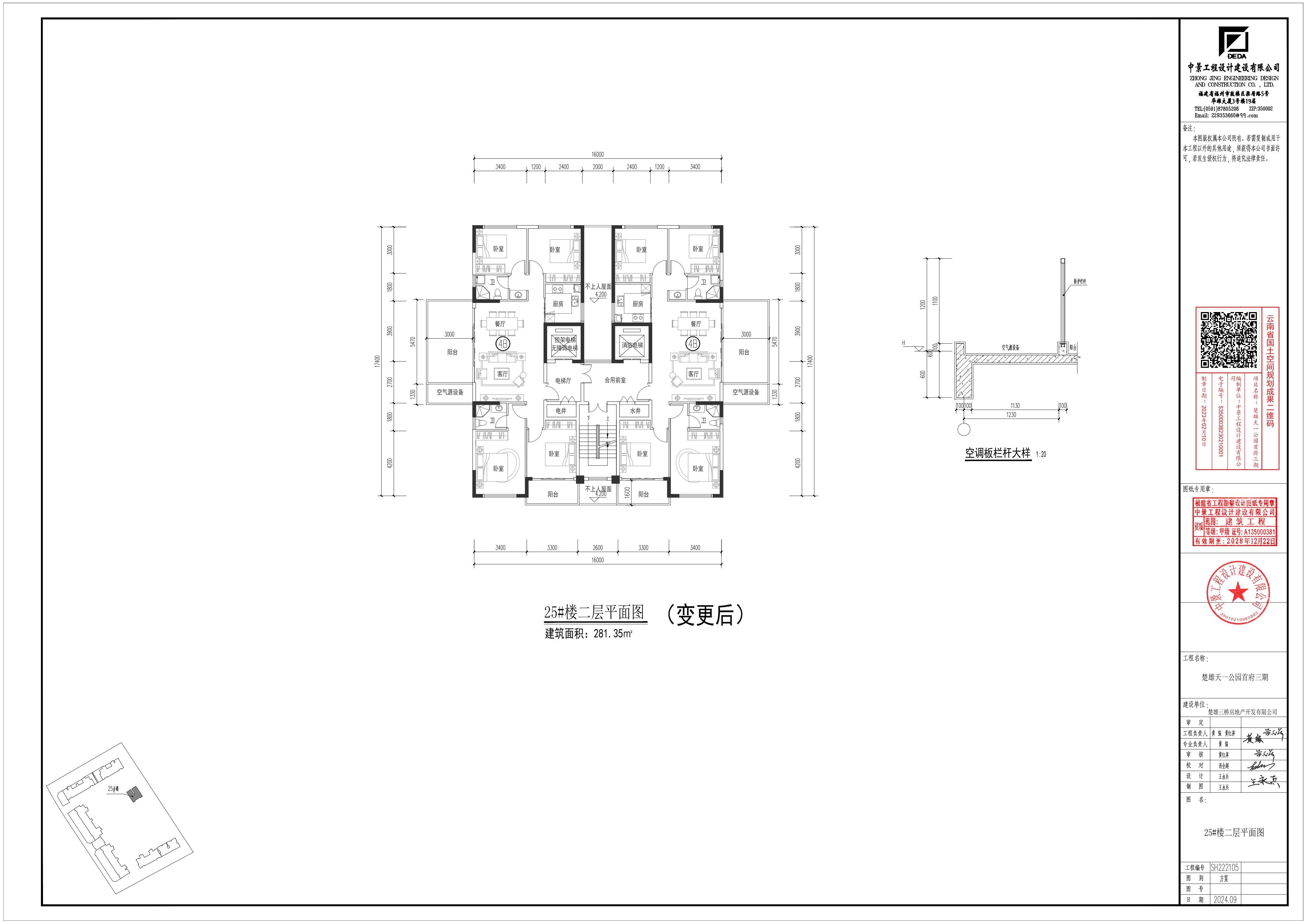 项目简介:楚雄天一公园首府三期项目用地位于楚雄市东南新城东部,地块东临现状空地,南临雍和居小区,西临雄宝路,北临楚雄天一公园首府二期项目用地,规划用地面积为35.37亩。该项目修建性详细规划于2023年3月审定实施,现楚雄三桥房地产开发有限公司提出在该项目保持整体布局不变,各项经济技术指标满足相关规范要求、技术标准的前提下,对25#楼建筑单体设计方案进行如下变更: