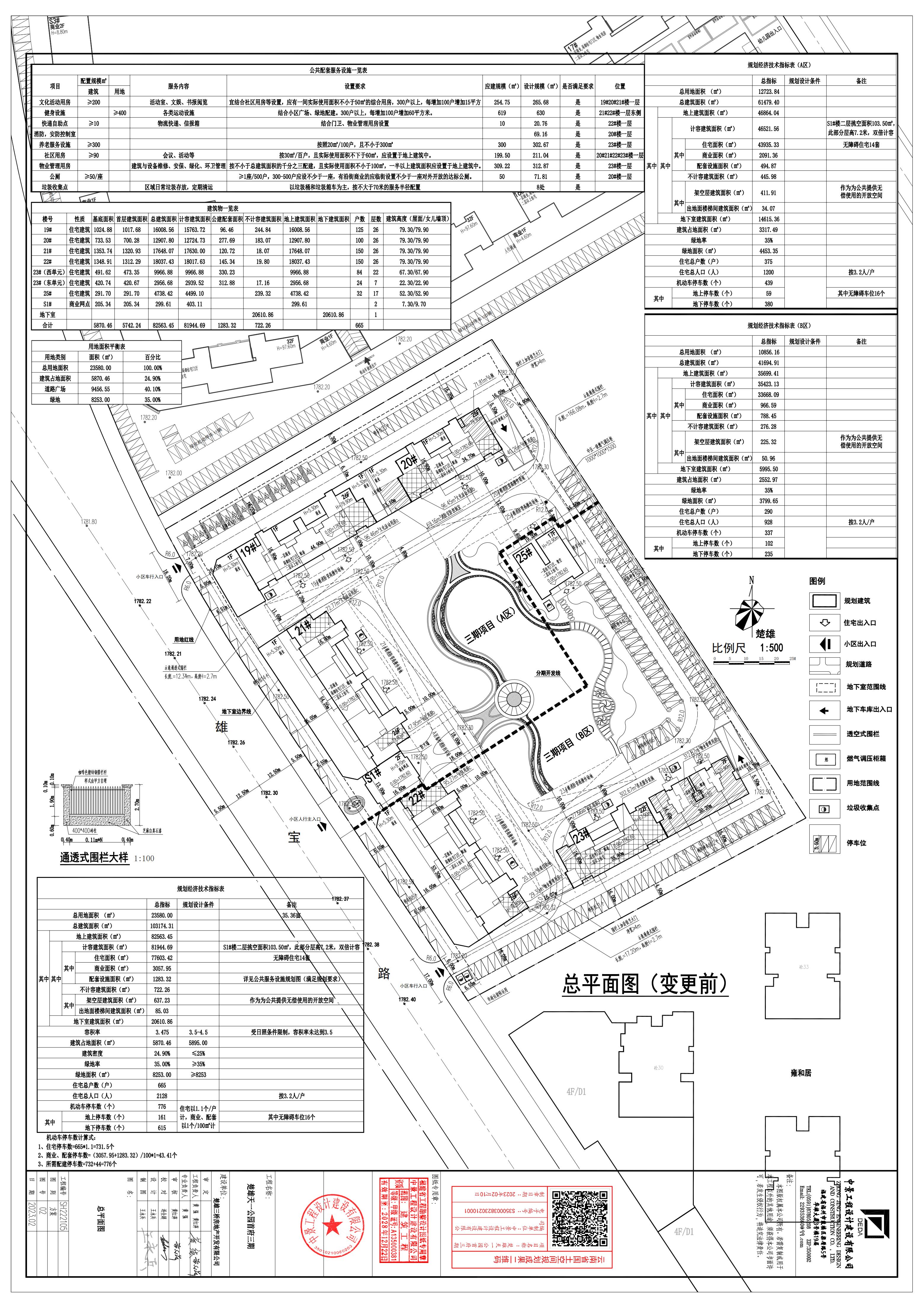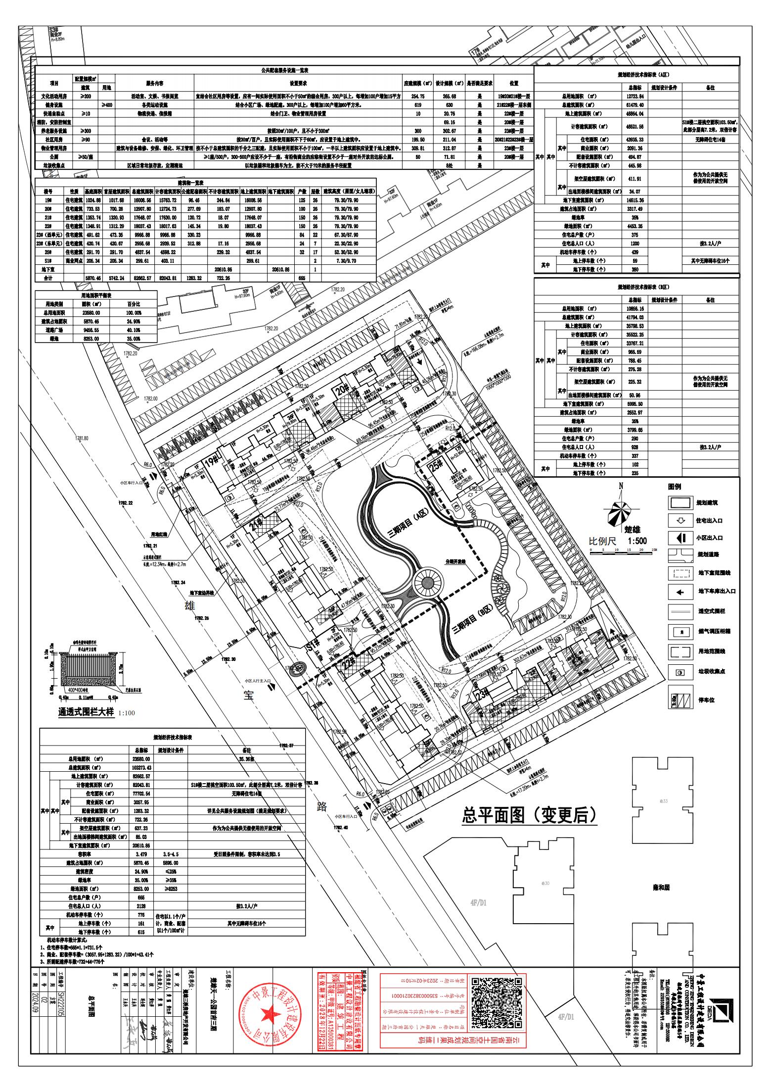 五、楚雄天一公园首府三期修建性详细规划A区经济技术指标不变,B区经济技术指标改变,总体经济技术指标改变,具体如下: