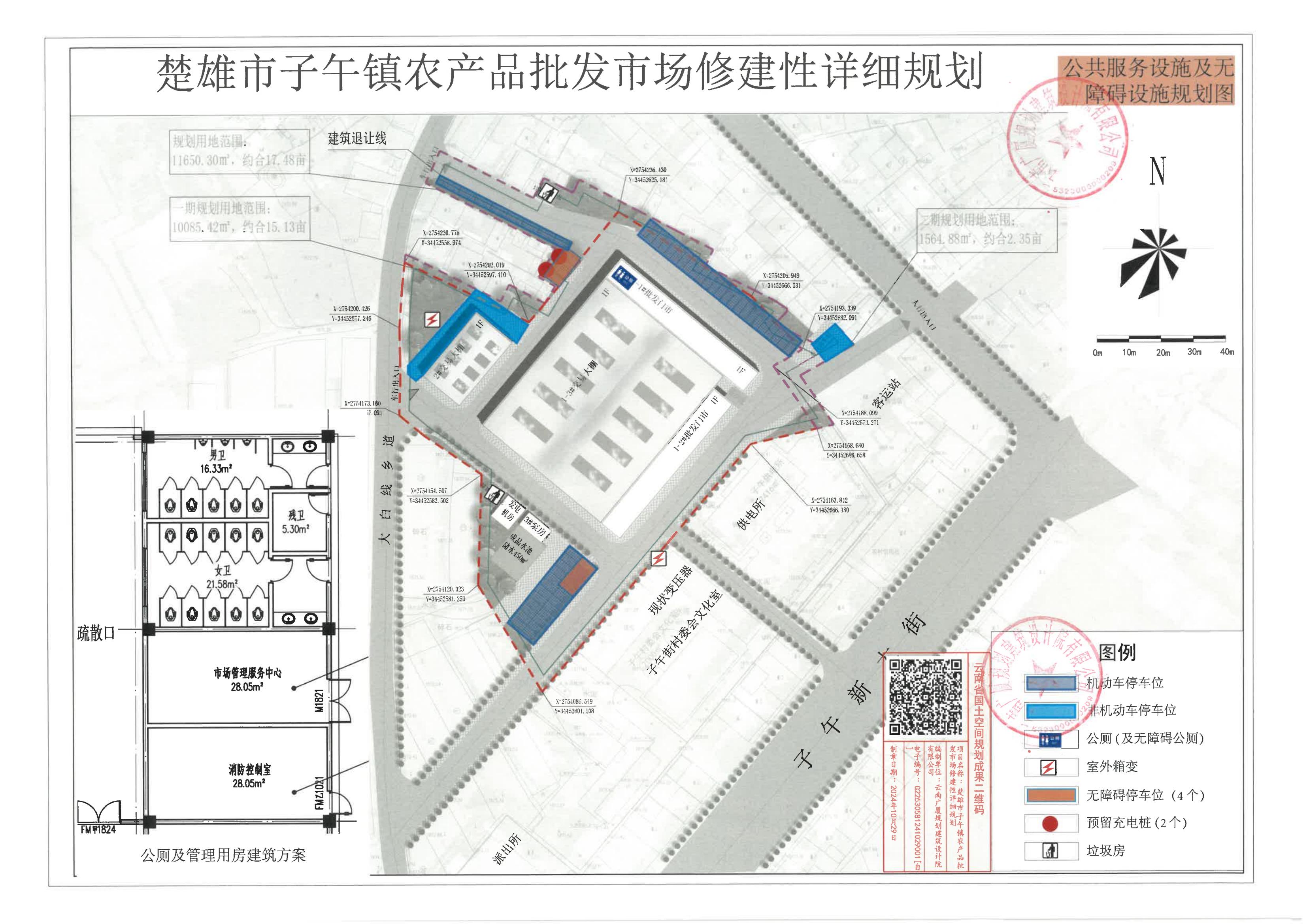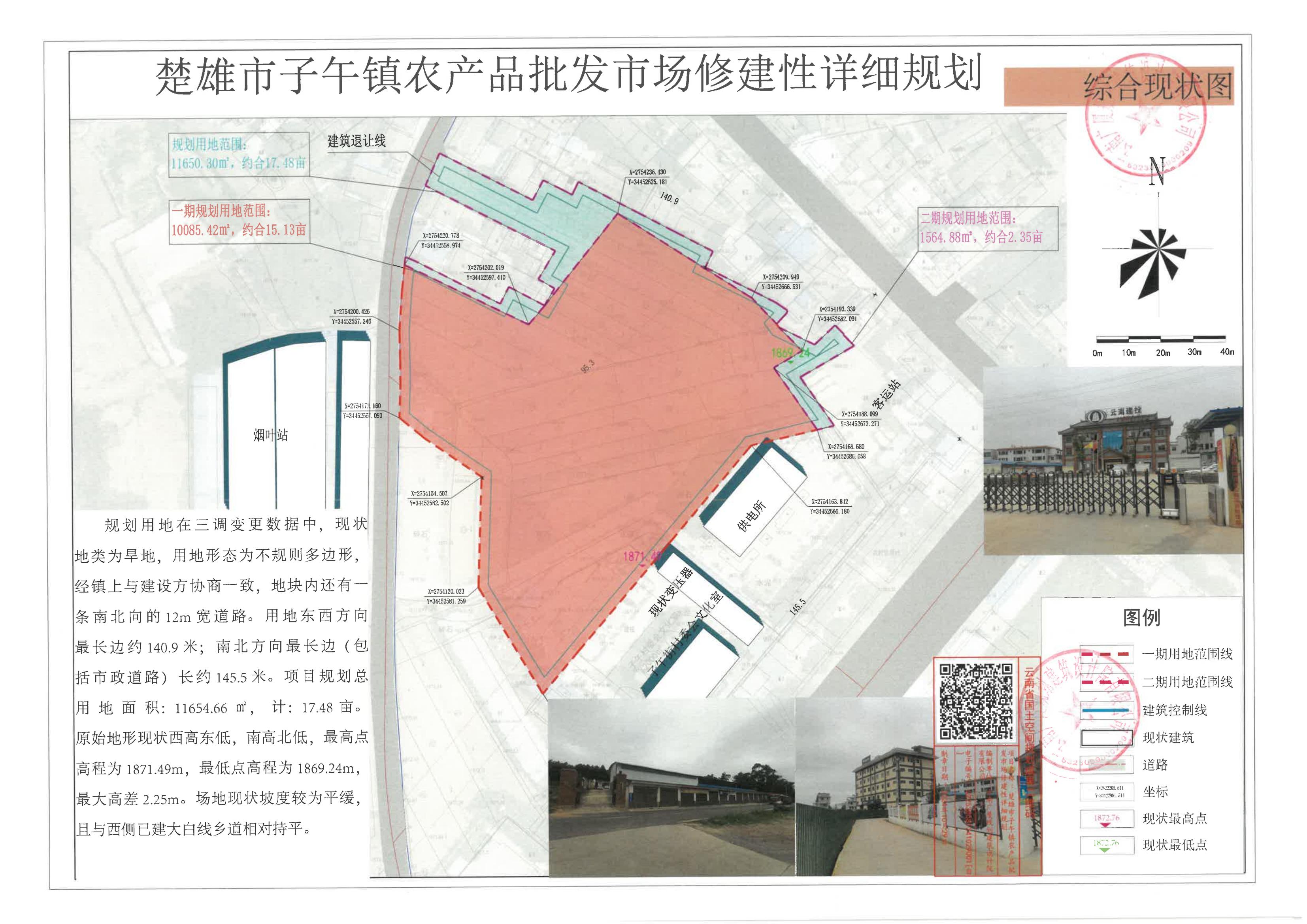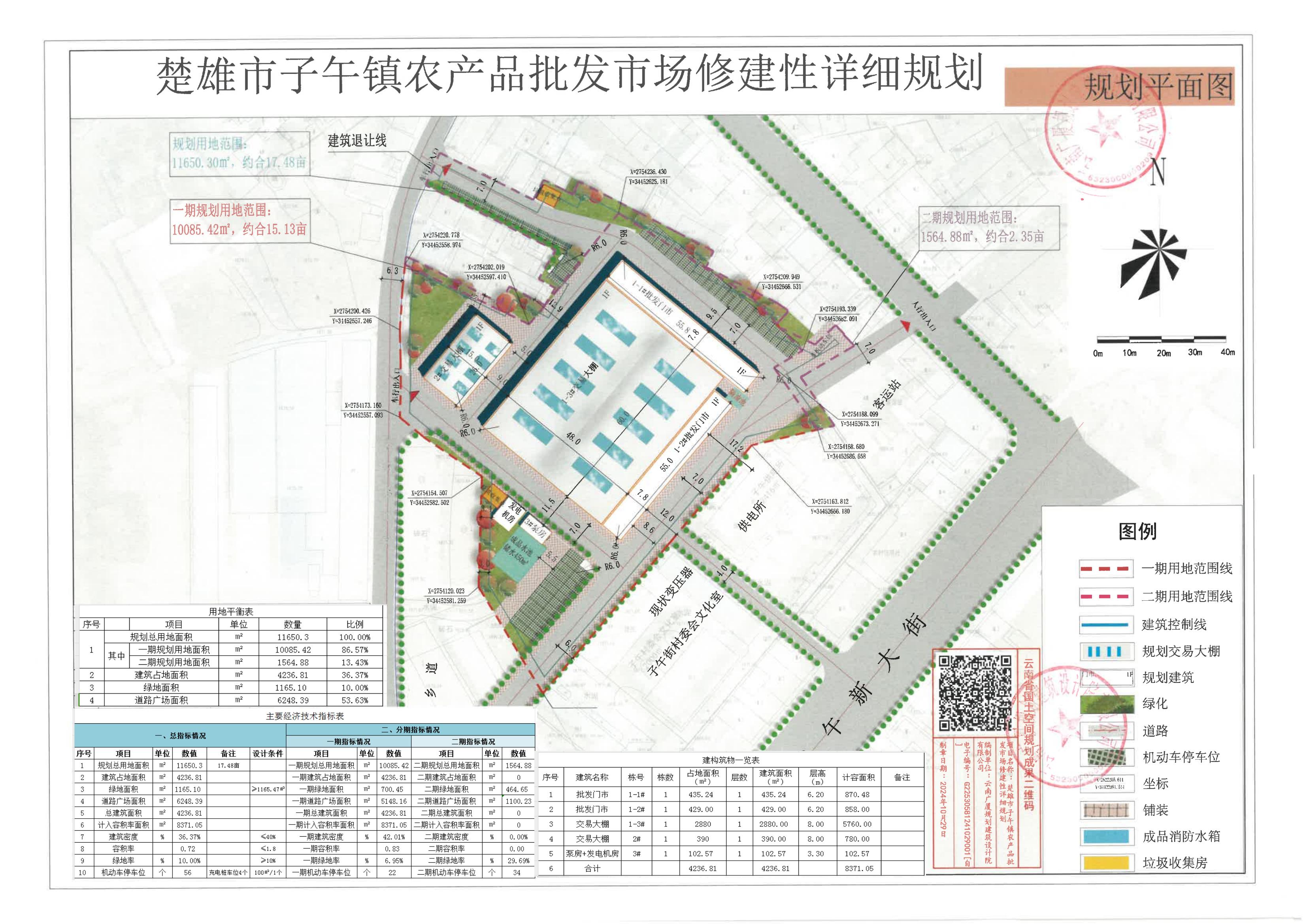 项目简介:楚雄市子午镇农产品批发市场建设项目用地位于楚雄市子午镇,地块东临子午客运站,南临子午派出所,西临大白线乡道,北临子午老街商铺,规划用地面积约17.48亩。通过规划拟新建农产品批发市场及配套设施,项目分两期实施建设。