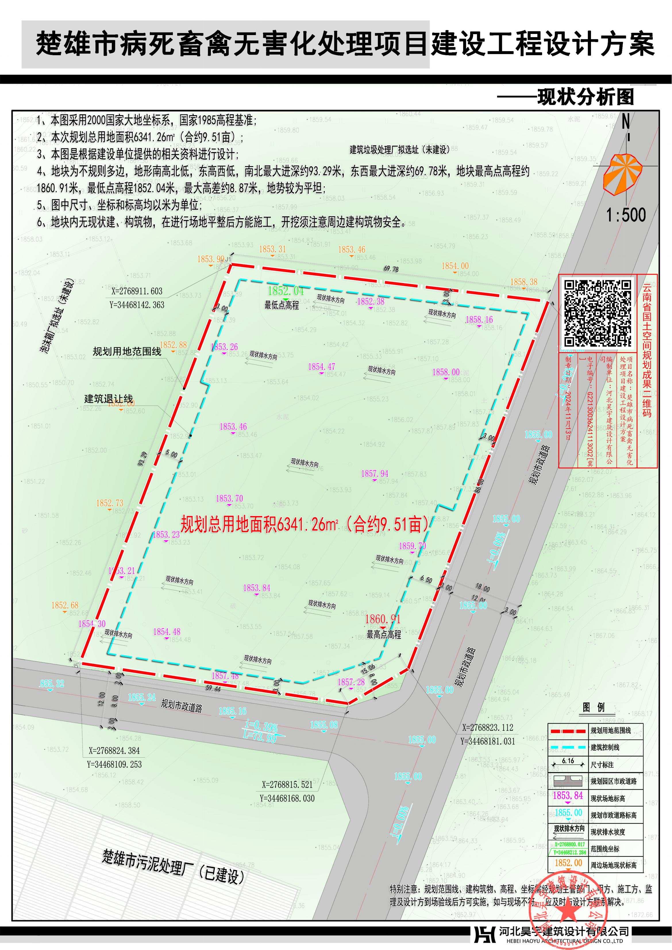 项目简介:楚雄市病死畜禽无害化处理项目用地位于楚雄市苍岭工业园区黄草片区,地块东、南临园区规划道路,西、北临储备用地,规划用地面积约9.51亩。通过规划拟新建病死畜禽无害化处理车间及配套设施。
