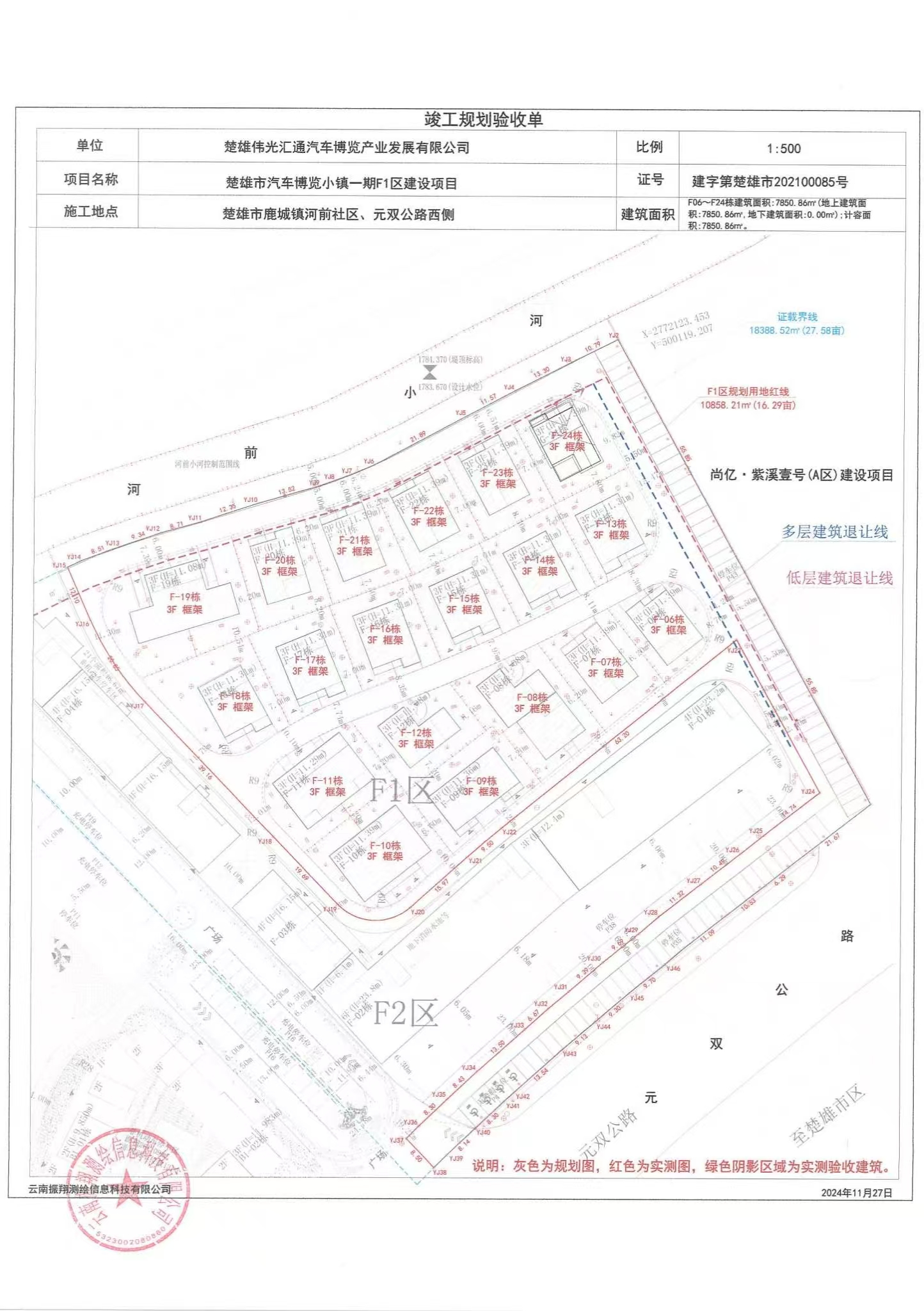 3.楚雄市汽车博览小镇一期F1区建设项目规划验收实测对比图。