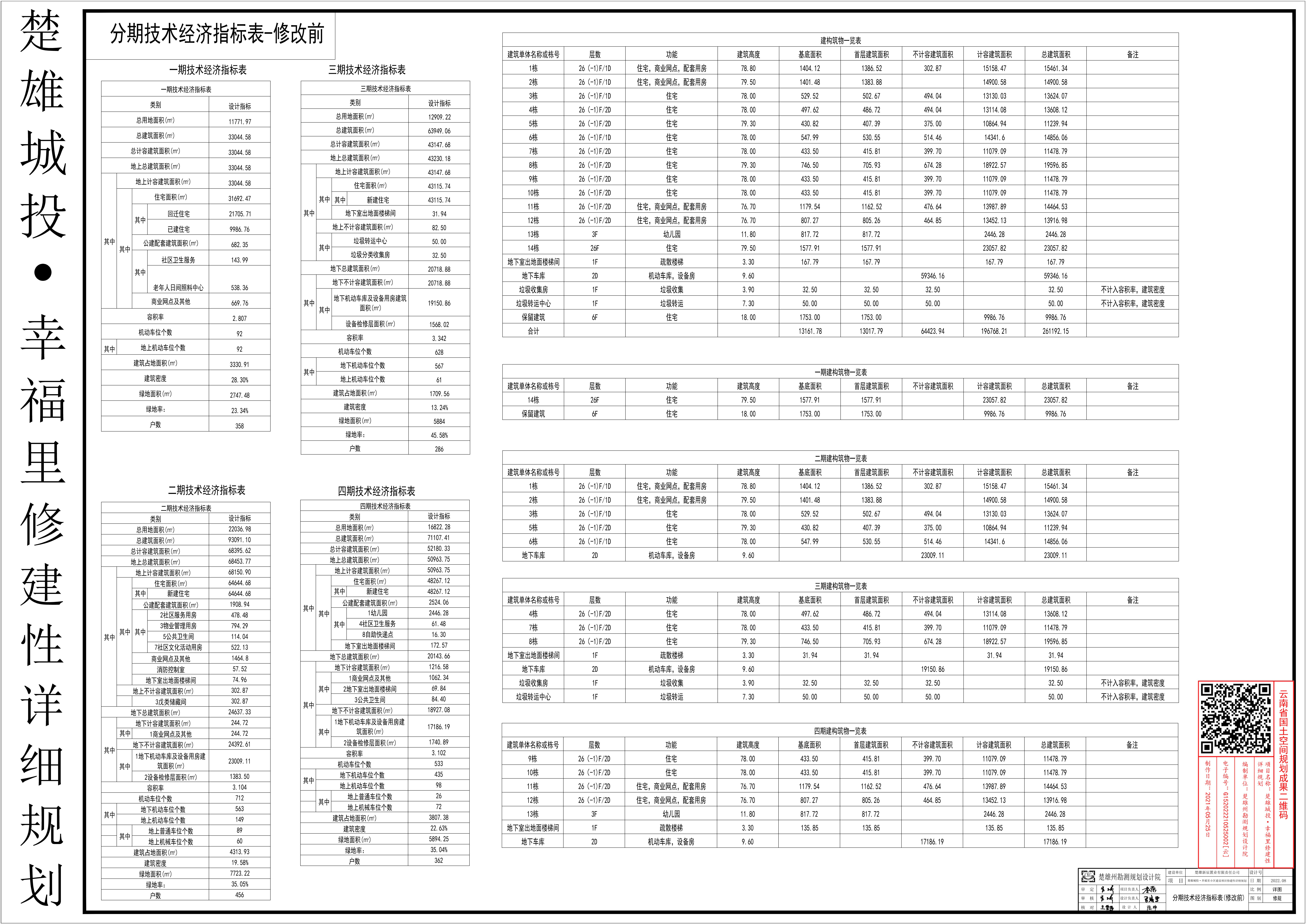 楚雄城投·幸福里修建性详细规划分期指标表