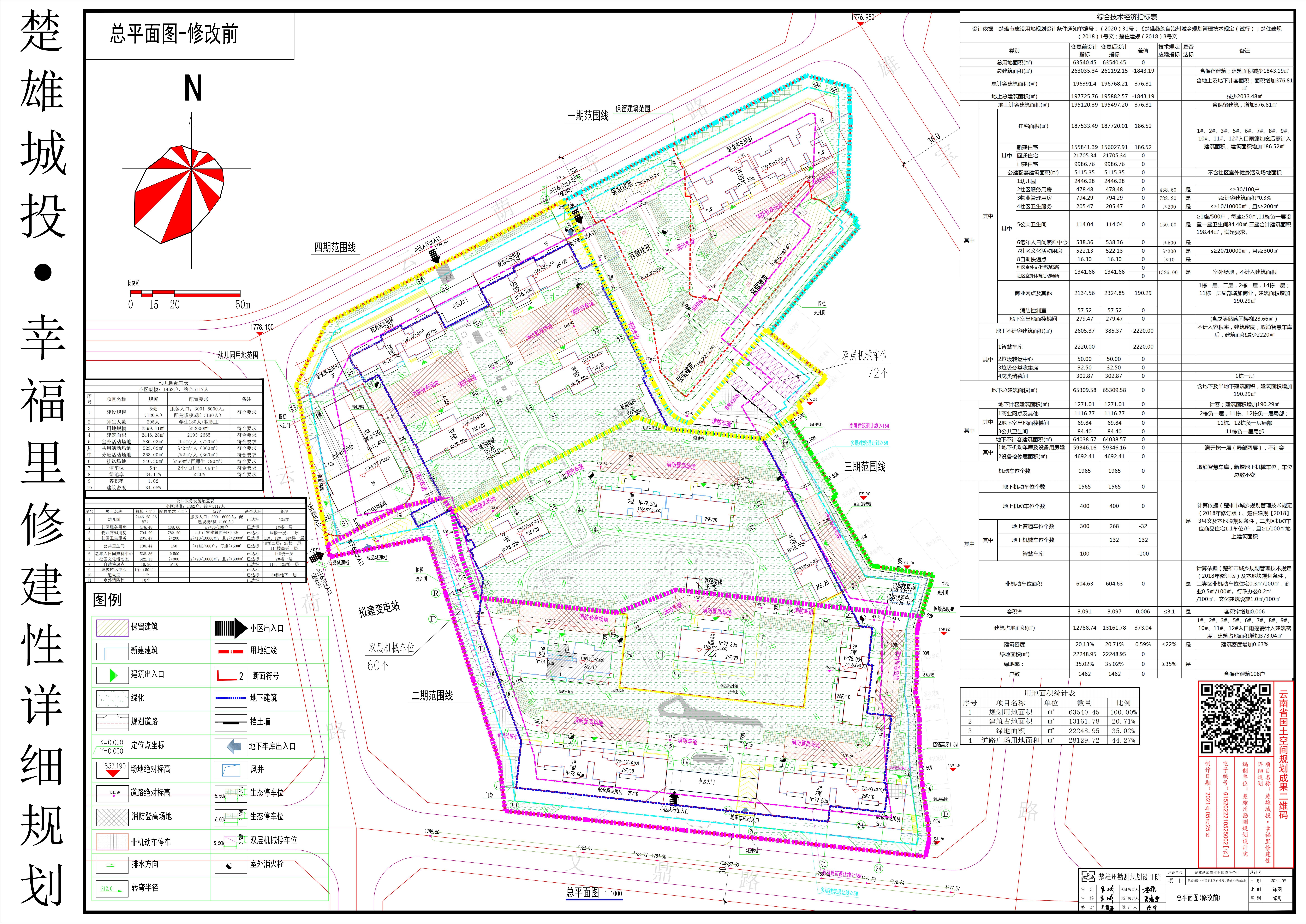 楚雄城投·幸福里修建性详细规划变更前后主要经济技术指标对比表