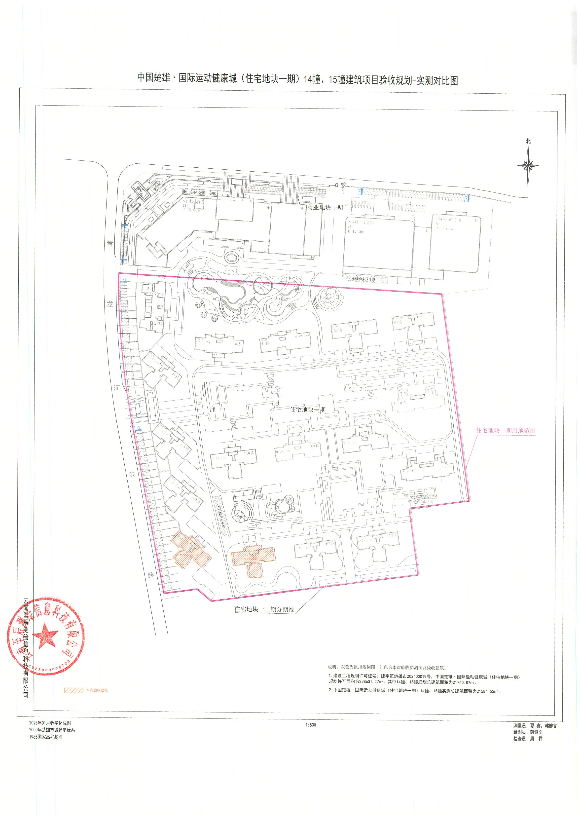 3.中国楚雄·国际运动健康城(住宅地块一期)14#、15#建筑规划验收实测对比图。
