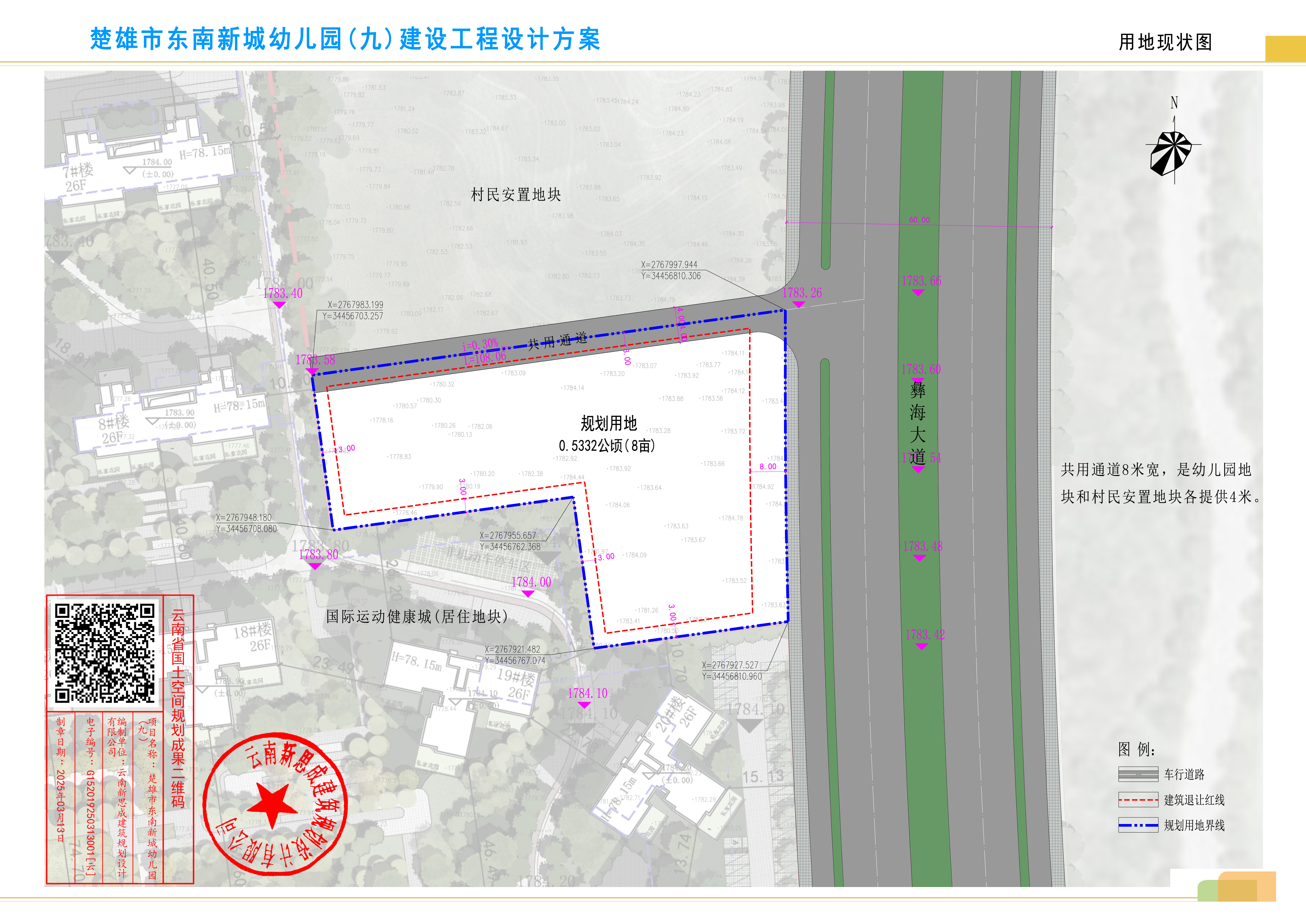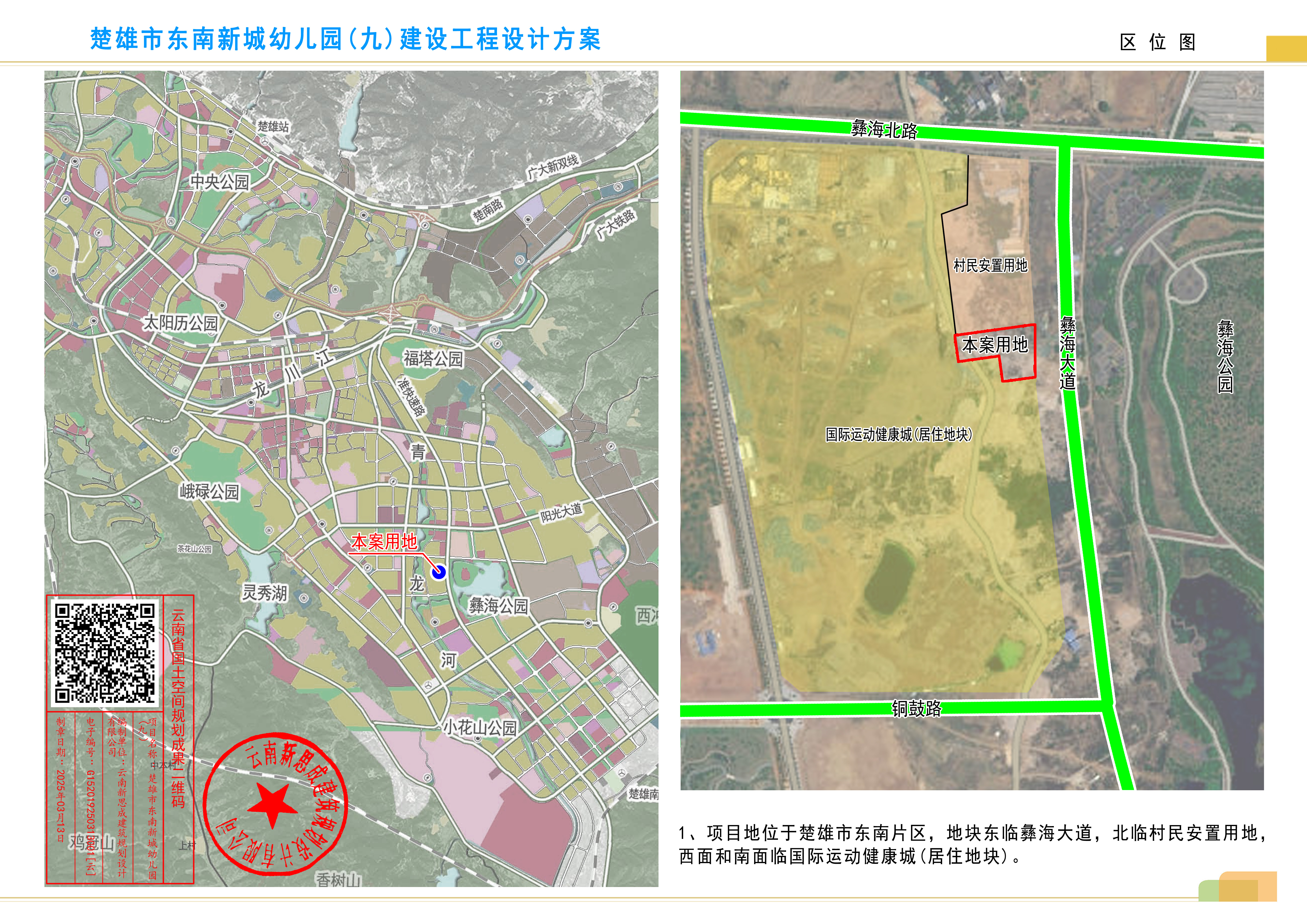 项目简介:楚雄市东南新城幼儿园(九)项目用地位于楚雄市东南新城片区,地块东临规划道路,西、南临中国楚雄·国际运动健康城项目用地,北临村民安置项目用地,规划用地面积约8亩。通过规划拟新建一栋幼儿园用房及配套设施。