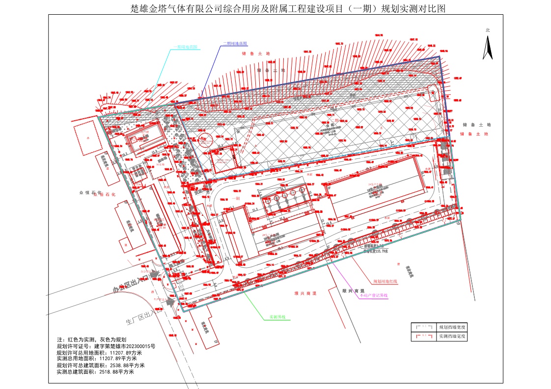 3.楚雄金塔气体有限公司综合用房及附属工程(一期)规划验收实测对比图。