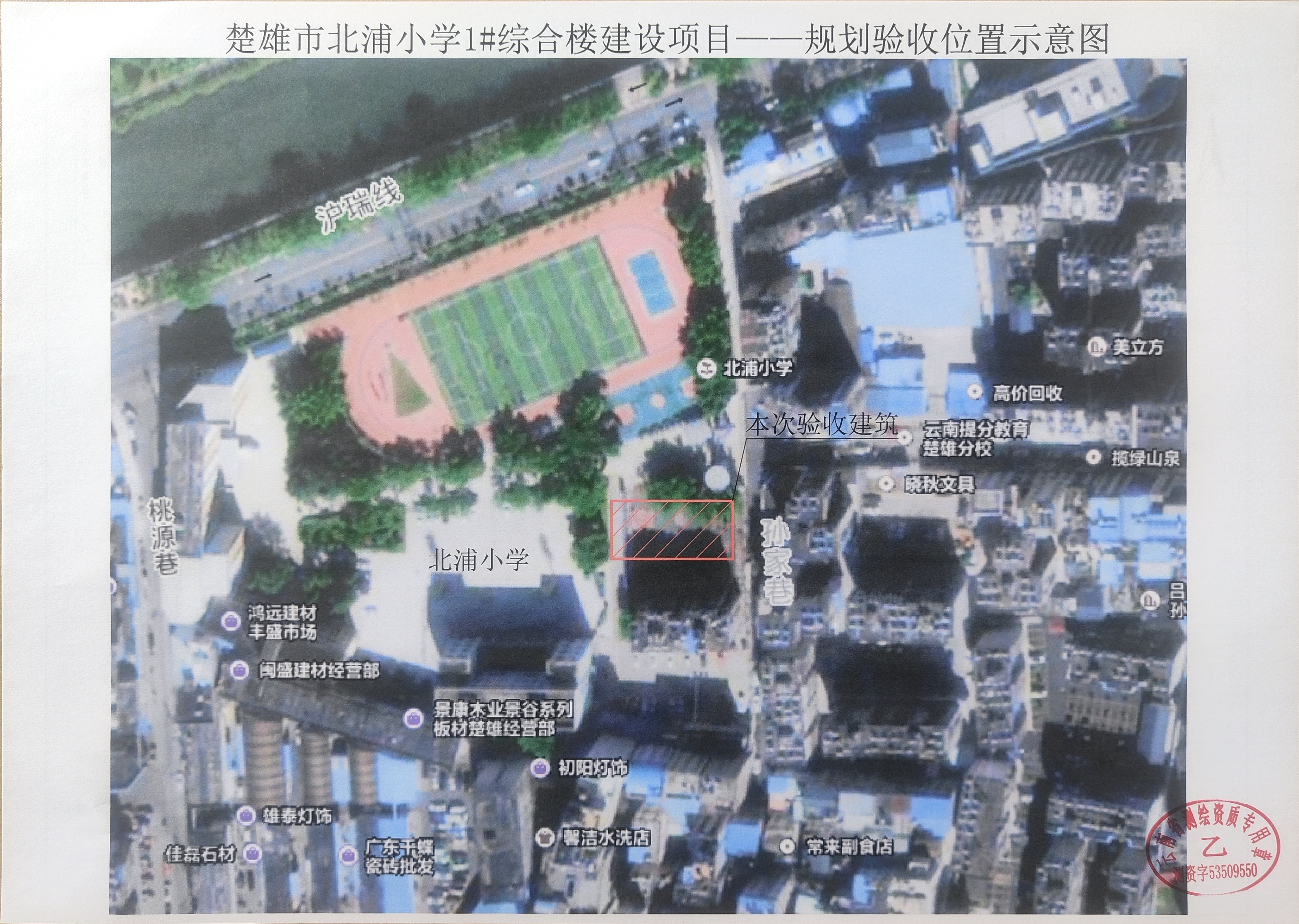 附件:1. 楚雄市北浦小学1#综合楼建设项目规划核实验收位置示意图;