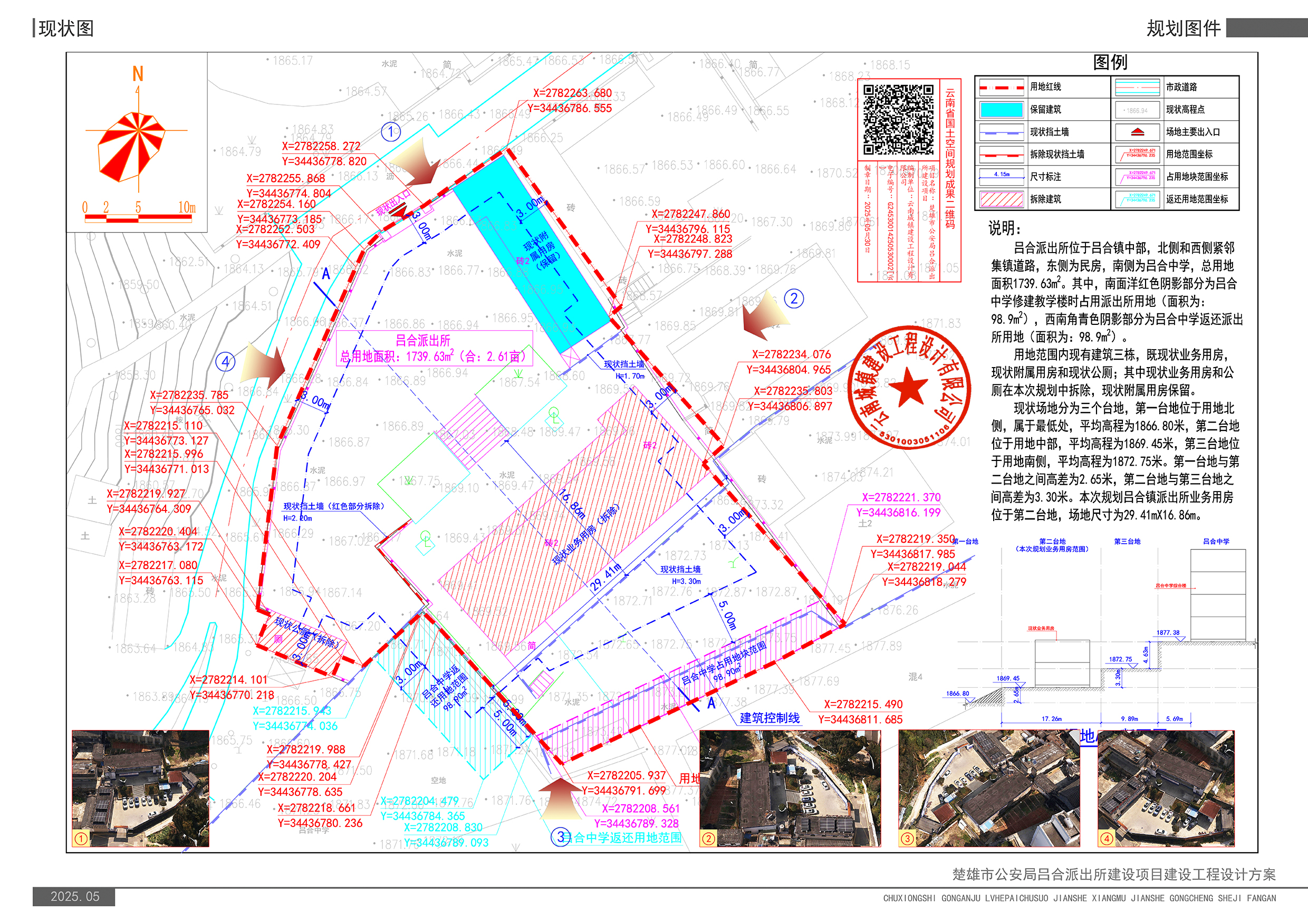 项目简介:楚雄市公安局吕合派出所建设项目用地位于楚雄市吕合镇,地块东临吕合镇财政所及现状民房,南临吕合中学,西、北两面临现状道路,规划用地面积2.61亩。通过规划拟新建公安派出所业务用房及配套设施。