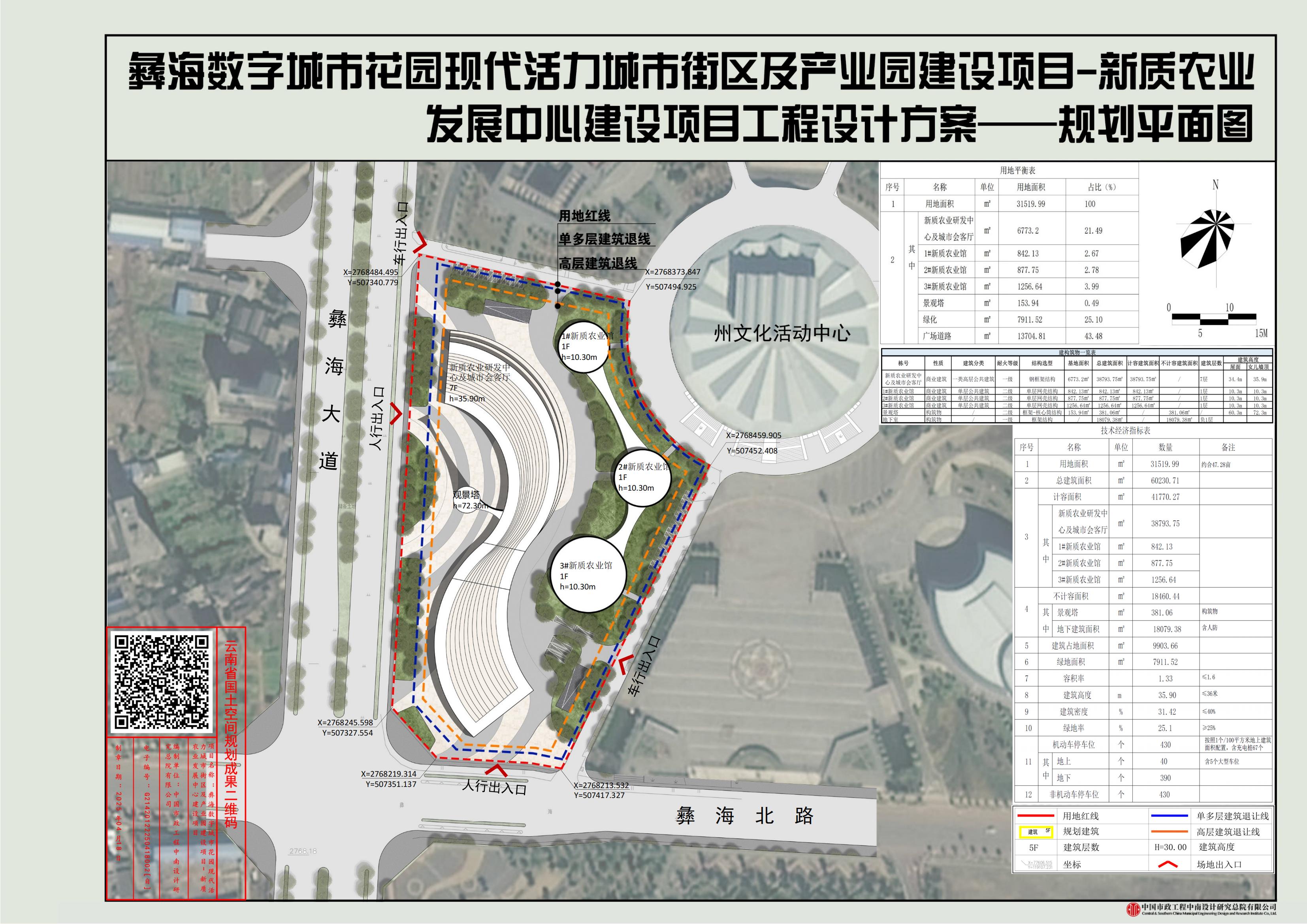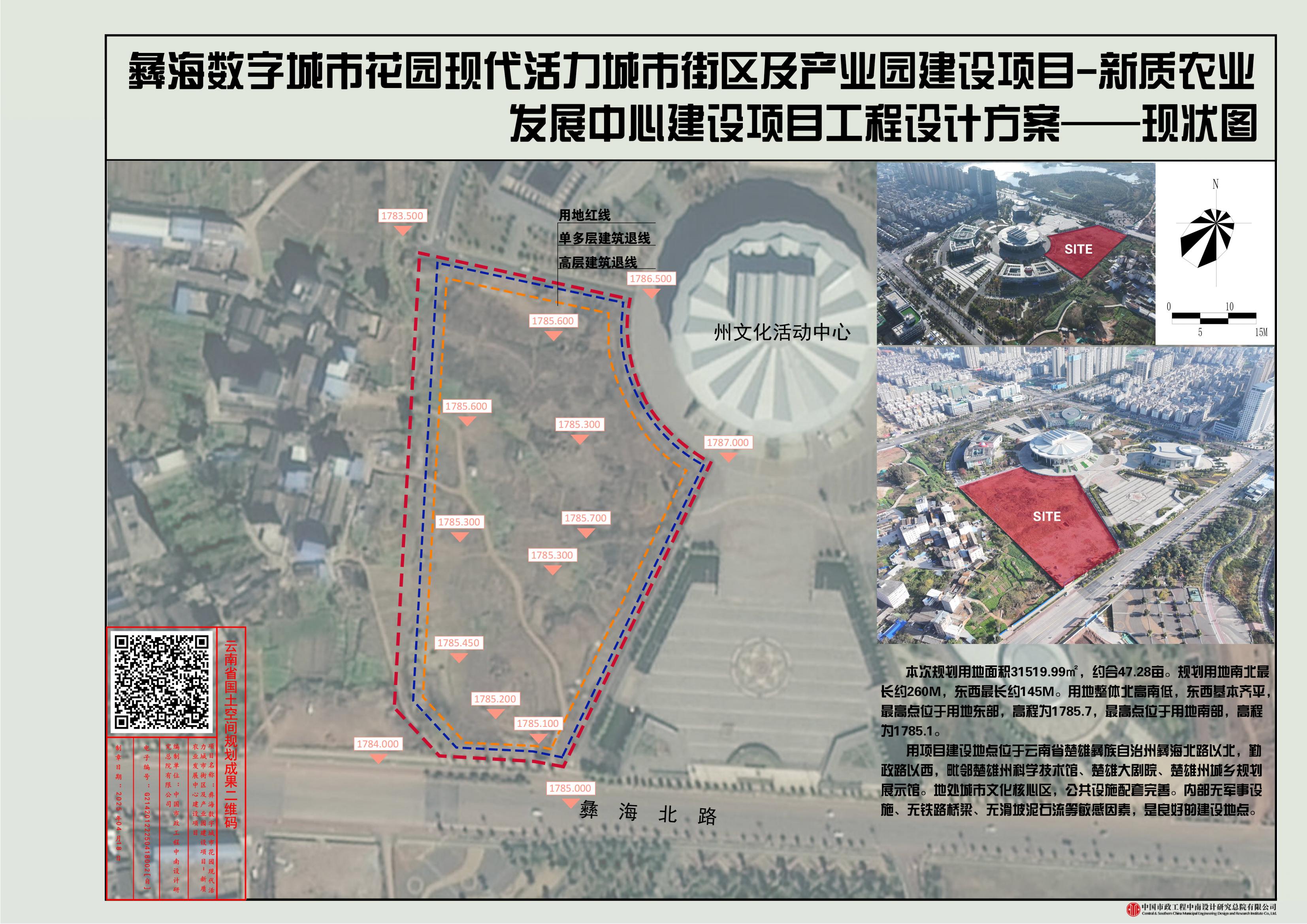 项目简介:彝海数字城市花园现代活力城市街区及产业园建设项目-新质农业发展中心建设项目用地位于楚雄市东南新城片区中部,地块东、北临楚雄州文化活动中心,南临彝海北路,西临彝海大道,规划用地面积47.28亩。通过规划拟新建商业用房及配套设施。