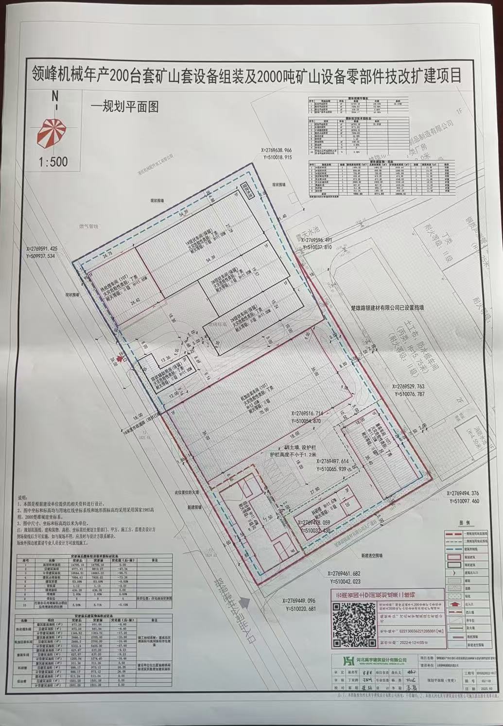 2.领峰机械年产200台套矿山套设备组装及2000吨矿山设备零部件技改扩建项目(二期)修建性详细规划图;