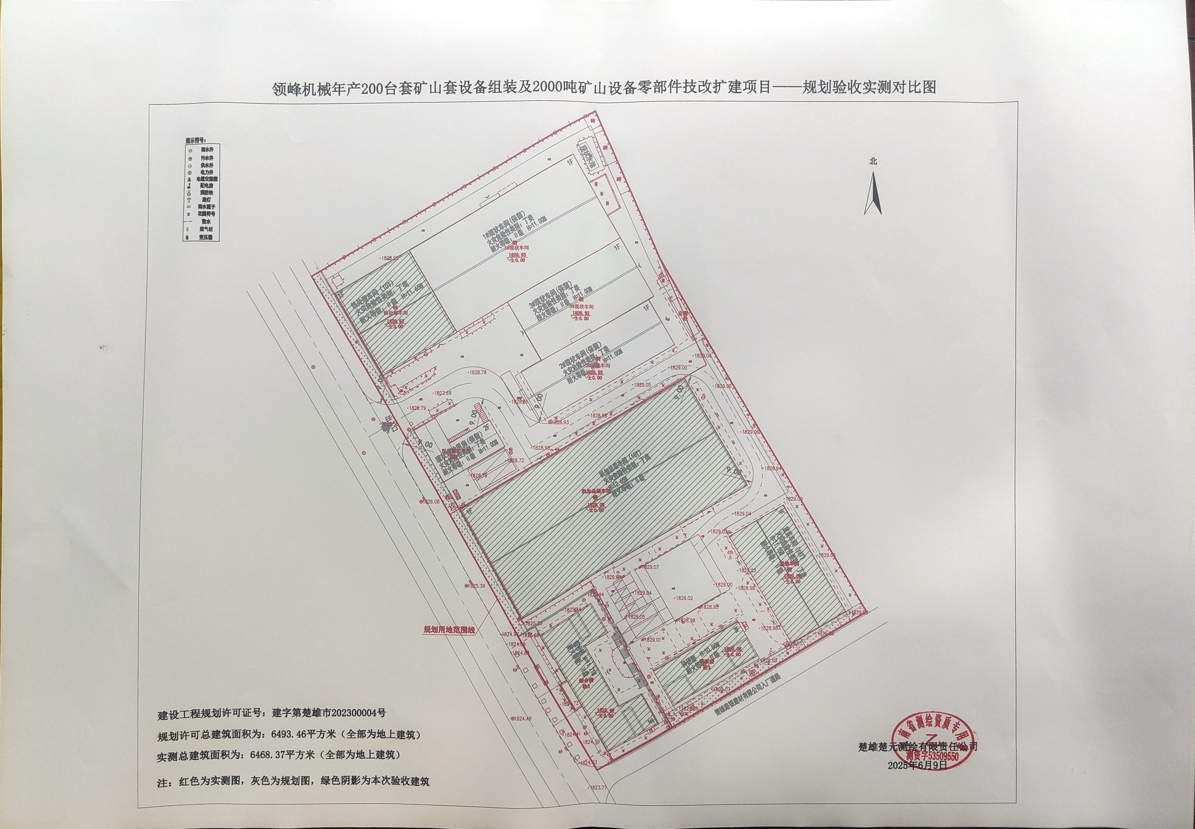 3.领峰机械年产200台套矿山套设备组装及2000吨矿山设备零部件技改扩建项目(二期)规划验收实测对比图。