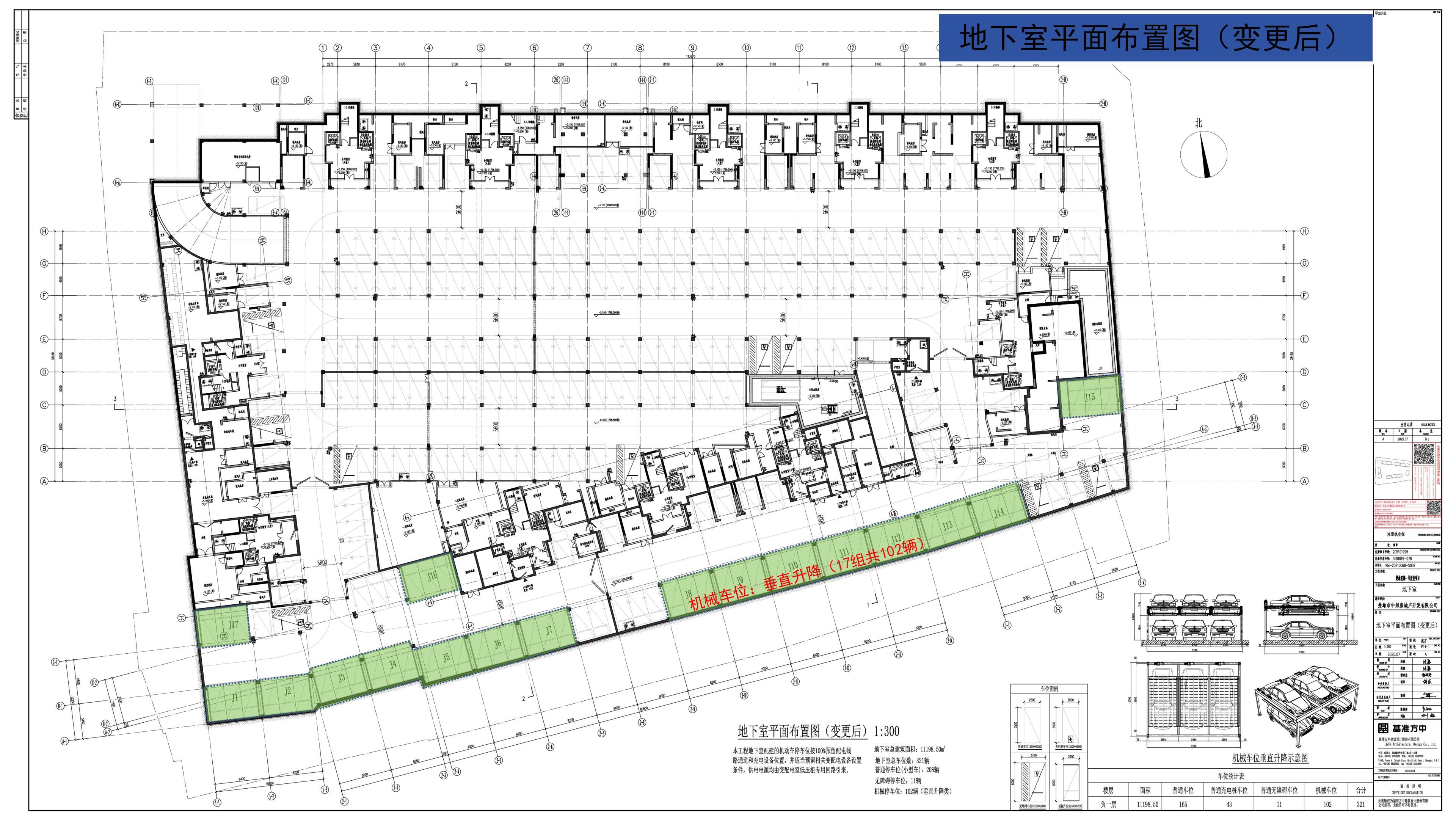 一、项目总机动车停车位384个保持不变,地上停车位由80个调整为63个;地下机械停车位由横移升降类调整为垂直升降,地下停车位数量由304个调整为321辆。