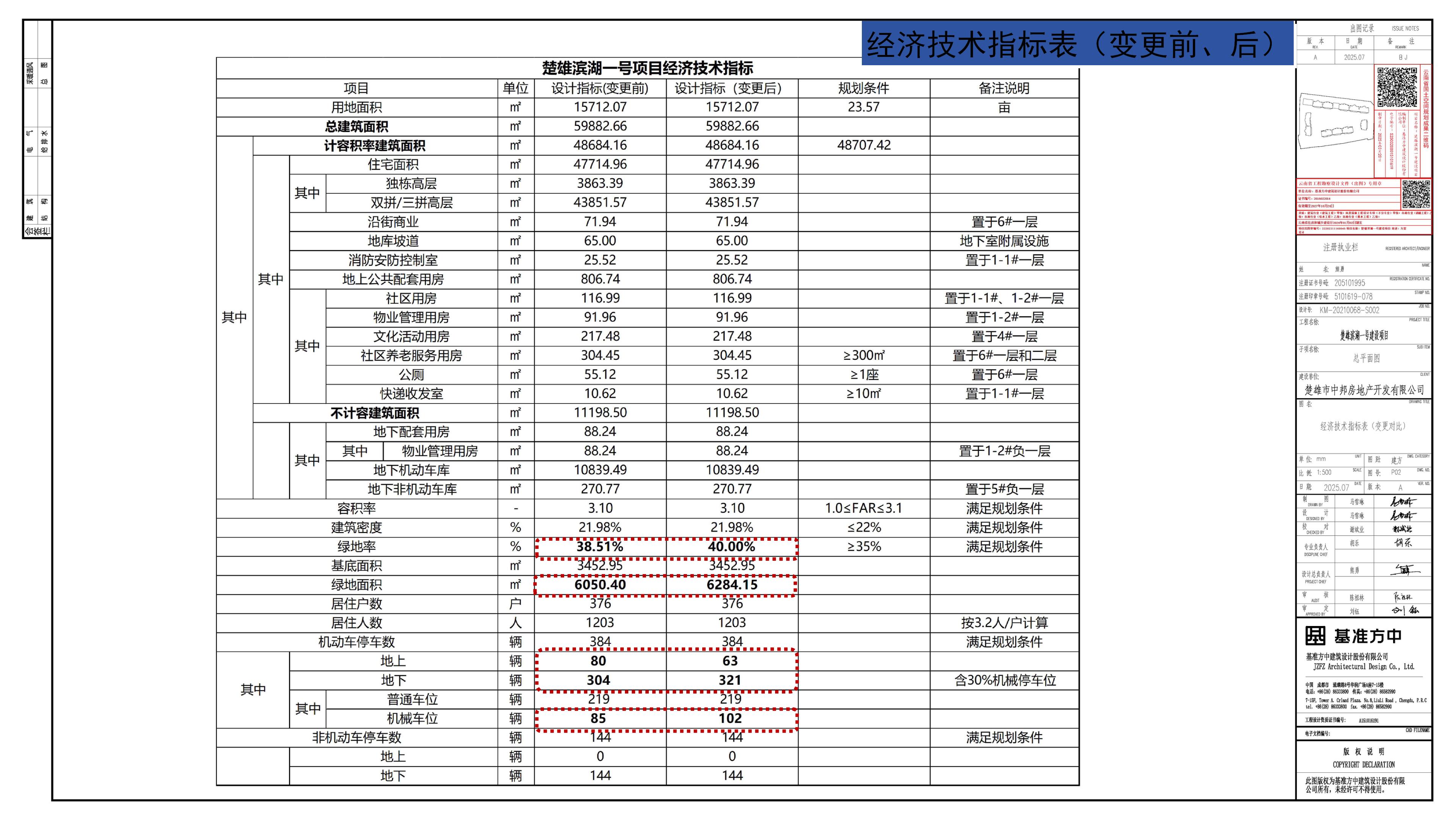 楚雄滨湖一号建设项目修建性详细规划变更前后主要经济技术指标对比表