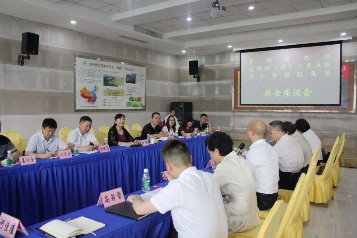 5月14日,杨静、杨俐昆一行实地考察了四川成都德仁堂控股集团社会福利、康养中心、养老服务、中医院和医药产业园区项目后,与德仁堂控股集团董事局主席林桂兴就加快推进楚雄德仁堂项目合作进行座谈交流。林桂兴主席表示,楚雄州市考察组的到来,增强了企业与楚雄合作的信心,德仁堂一直致力于大健康产业,拥有全域医养的产业链,养老、旅游、医疗、教育是未来产业发展趋向,希望双方抓住机遇,加快楚雄德仁堂项目推进工作,确保项目早日落地、建设、投产,发挥效益,助推楚雄医养行业发展。杨静主席表示楚雄州将全力为企业排忧解难,提供最优的服务、创造最优的环境,确保项目顺利推进。杨俐昆市长对楚雄德仁堂项目推进过程中存在的问题、未来发展方向、项目未来运营过程中的效果、医养合作等方面提出建议和要求,并表示楚雄市将竭尽全力为企业发展营造良好的环境,提供最优的服务,保障项目加快推进。