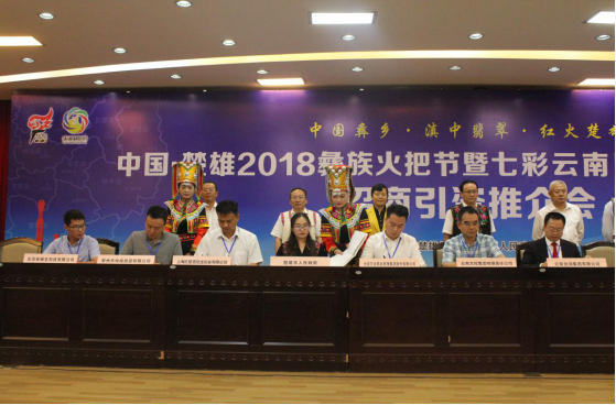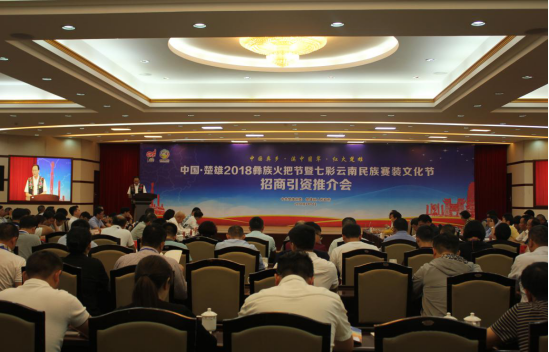 2018年8月5日下午,中国·楚雄2018彝族火把节暨七彩云南民族赛装文化节招商引资推介会在州会务中心举行。楚雄市借助一年一度的“火把节”招商平台,积极筹备组织、精准对接邀商、认真准备推介、组织项目签约,招商引资成果丰硕。
