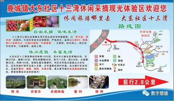 楚雄市鹿城镇大东社区十三湾,共有7个居民小组134户620人,这里风景优美,空气清新,景色迷人,物产丰富,肥沃的土地孕育出圆红肥大、色泽亮丽、香甜爽口的草莓。