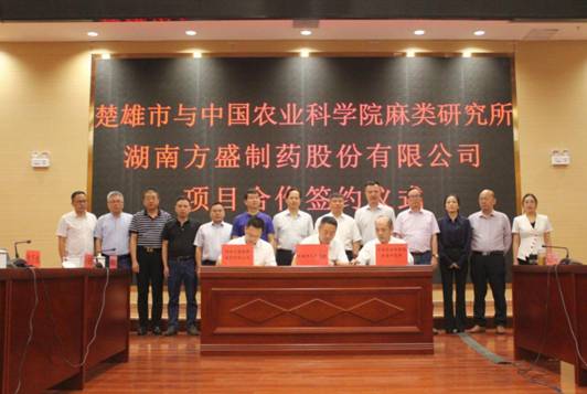 8月27日,中国农业科学院麻类研究所、湖南方盛制药股份有限公司应邀再次到楚雄市进行项目考察洽谈。8月28日,市委副书记、市人民政府市长杨俐昆代表楚雄市与中国农业科学院麻类研究所、湖南方盛制药股份有限公司签署三方合作协议,州委常委、市委书记李先祥出席签约仪式并致辞。签约仪式由市人民政府副市长荀之灵主持。