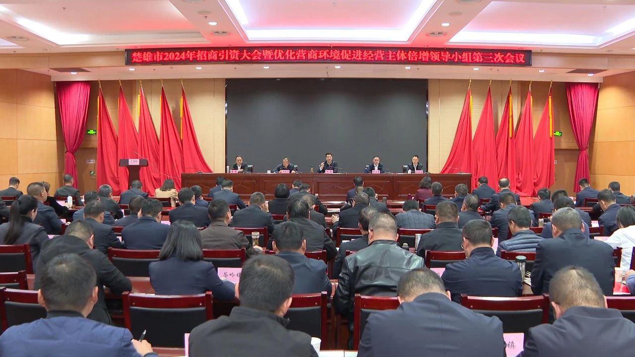 2024年2月23日,楚雄市召开2024年招商引资大会暨优化营商环境促进市场体倍增领导小组第三次会议,深入学习贯彻习近平新时代中国特色社会主义思想和党的二十大精神,全面贯彻落实中央和省委、州委经济工作会议和省州两会精神,要求全市上下要全员上阵、全线出击、全面发力,掀起新一轮大抓招商引资、大抓营商环境、大抓市场主体的热潮,奋力拼抢“开门红”、全力确保“全年好”,推动全市高质量发展迈出新步伐、取得新突破。