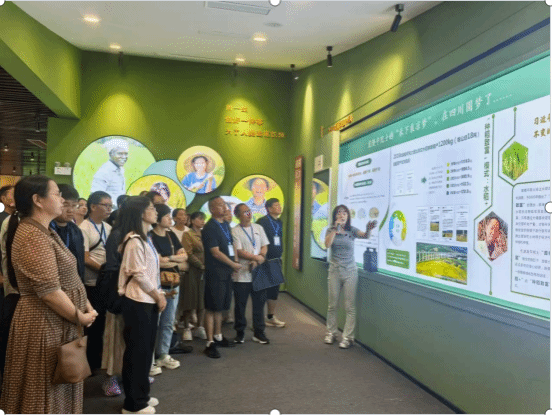在袁隆平杂交水稻科学园,学员们学习了“农业科研 + 品牌塑造 + 教育 + 乡村文旅”等多业态相结合的运营模式,被袁隆平“一生耕耘稻田,只为天下粮仓”的执着精神深深打动,深刻体会到农业科研与产业融合的巨大潜力。