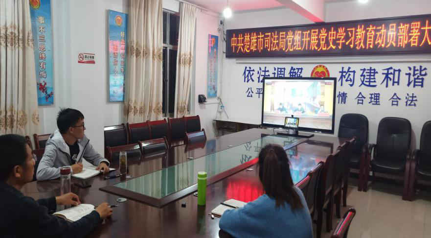会议以视频形式召开,市司法局机关全体干部职工(含司法协警)、律师事务所负责人和党员律师在主会场参会,各司法所干部职工在分会场参会。