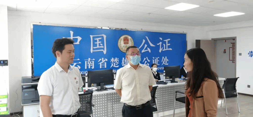 2021年9月3日上午,楚雄市司法局副局长李玉蓉、公共法律服务管理科科长王荣江到云南省楚雄市公证处工作检查指导工作。
