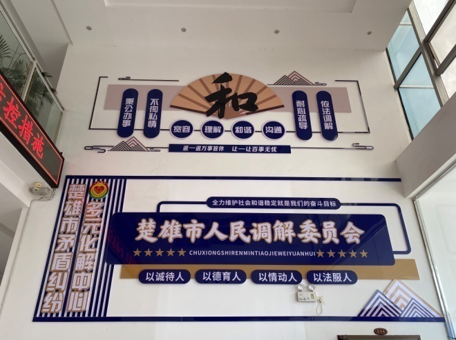 为提升“更和谐、更温馨”的调解场所建设,积极回应人民群众对崇尚和谐的文化理念和厌诉、耻讼的普遍心理。2022年以来,楚雄市司法局以推进作风革命加强机关效能建设为契机,按照“硬件达标、软件到位、服务优先、温馨如家、促进调解、群众满意”的标准,紧密结合“我为群众办实事,调解为民解忧难”实践活动,积极营造“温馨服务、效能服务、人性服务”的服务效率和服务环境,大力对楚雄市人民调解委员会实施亲民化提升改造。