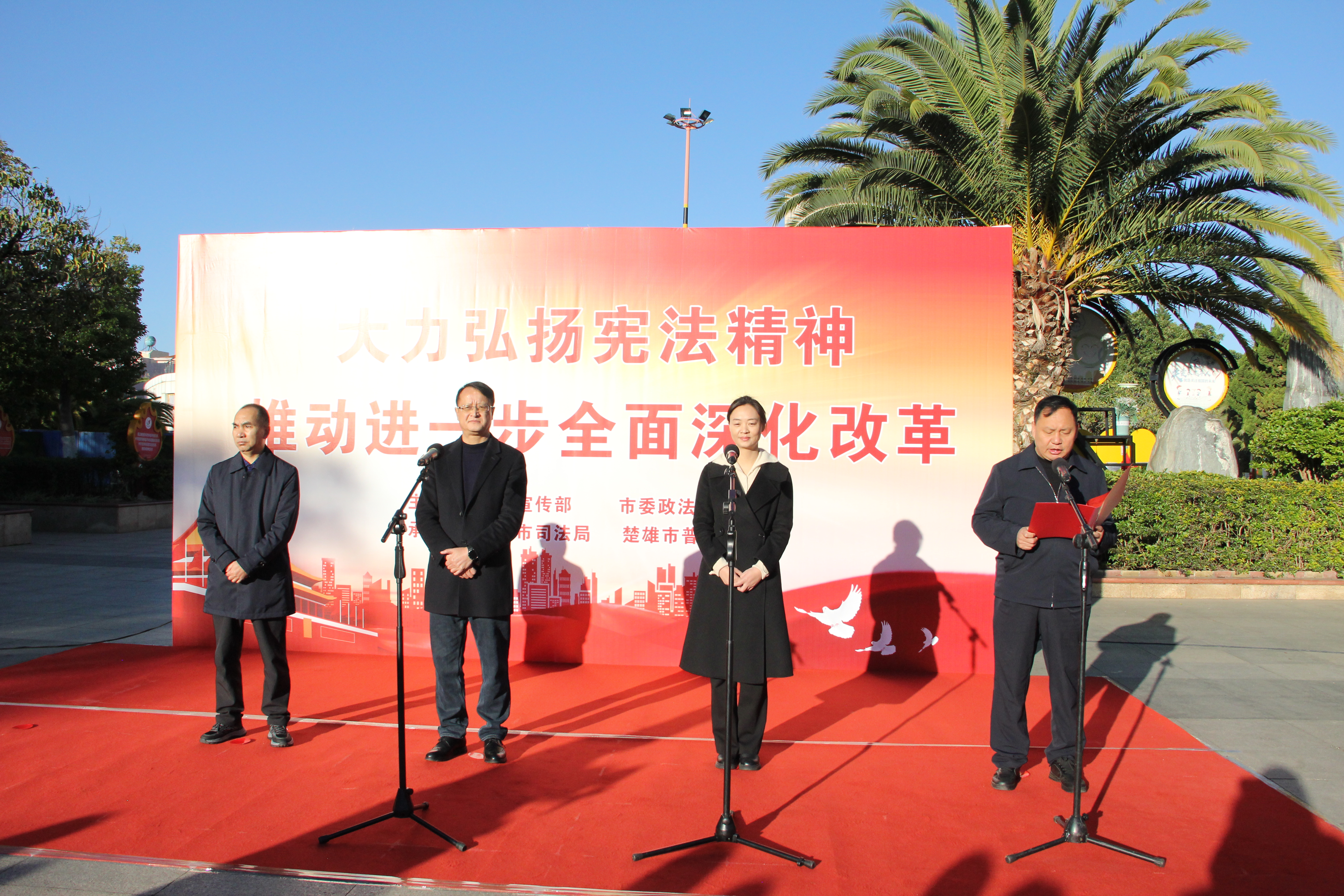 今年是我国现行宪法颁布施行42周年,为开展好第十一个国家宪法日和2024年“宪法宣传周”活动,12月3日,楚雄市2024年“宪法宣传周”启动仪式在桃源湖广场举行。