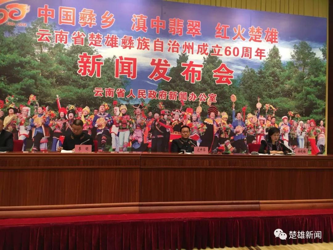 4月8日上午10时,以“中国彝乡•滇中翡翠•红火楚雄”为主题的楚雄彝族自治州成立60周年新闻发布会在昆明海埂会堂举行。
