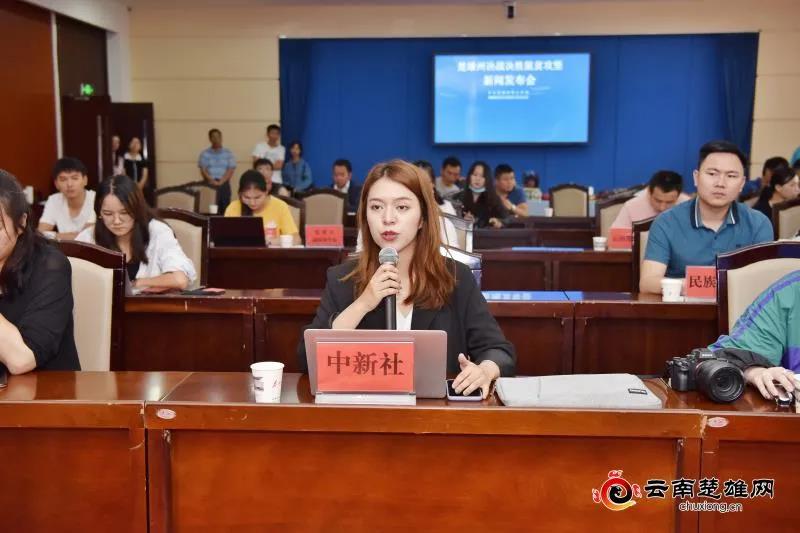中新社、中国网、云南日报等中央驻滇、省级及州级新闻媒体的记者参加新闻发布会,并就楚雄市脱贫攻坚工作进行提问。